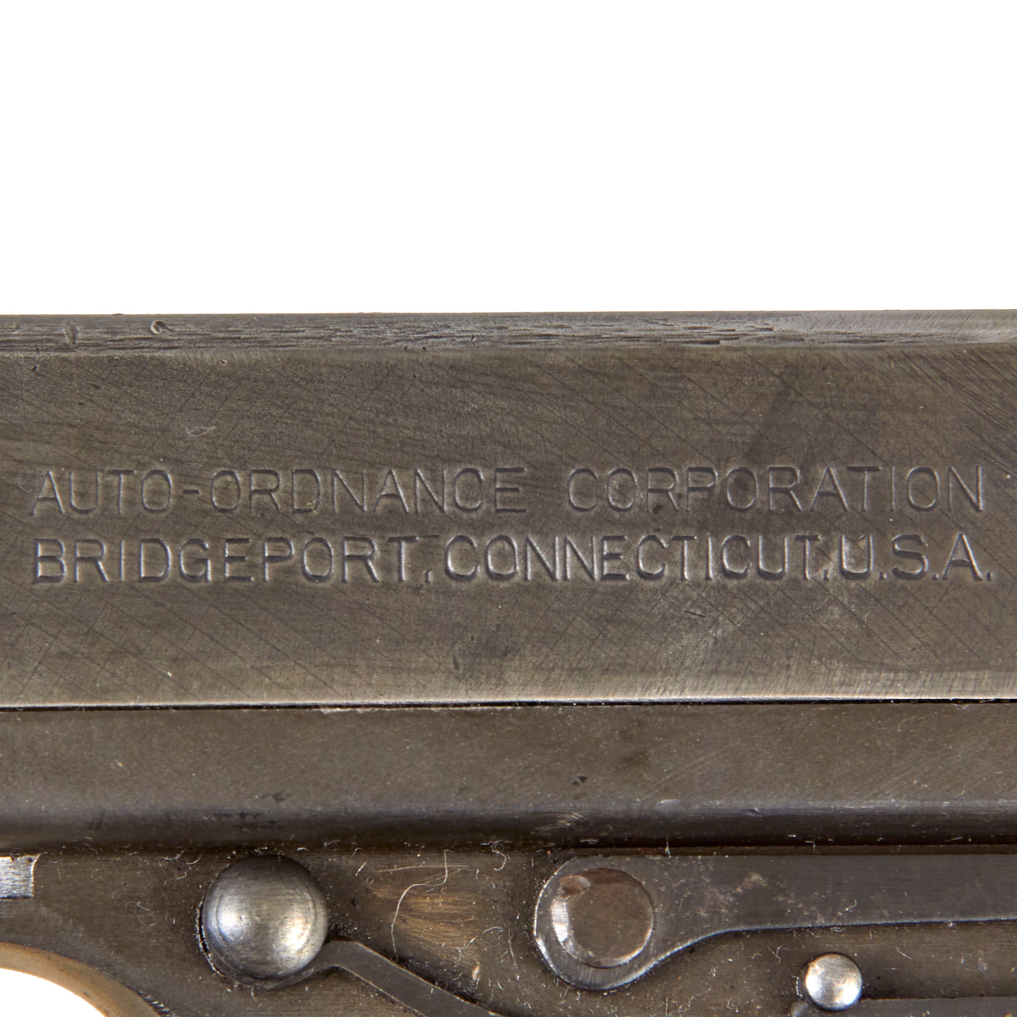 - ATF compliant non-firing receiver (complete with original arsenal markings!) - Serial No. A.O. 60941, indicating production by Auto-Ordnance, the designer of the Thompson Submachine Gun.