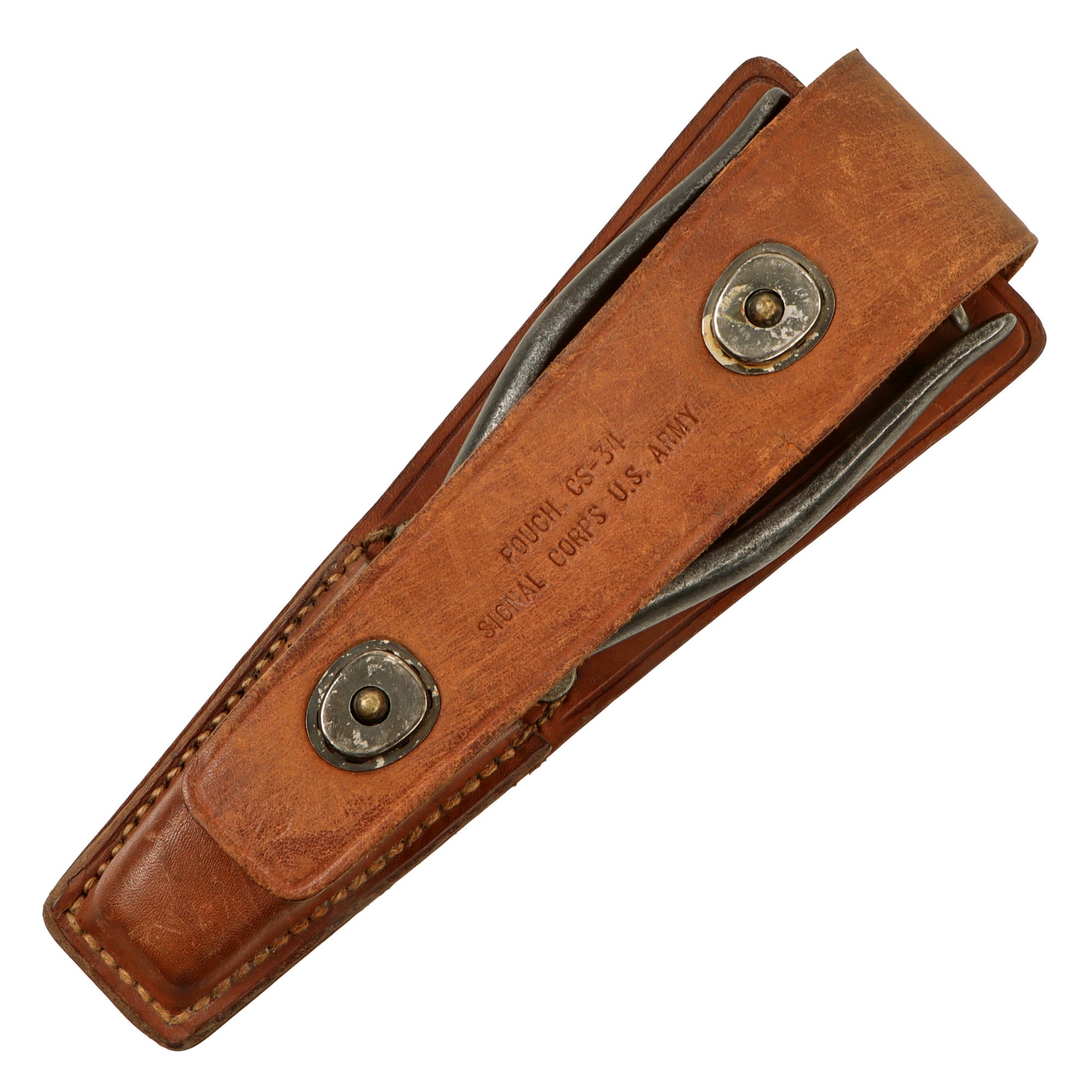 Original U.S. WWII US Army Signal Corps Lineman’s Tool Set With CS-34 Leather Pouch, TL-29 Pocket Knife and Utica Tools 50 7 Pliers