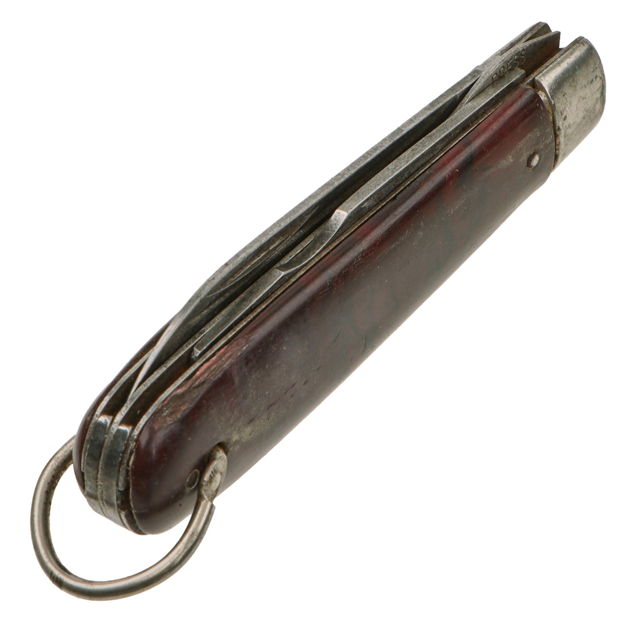 As the knife progressed through the 1930s, through World War 2, and into the post war era, quality and craftsmanship began to decline. Post World War 2 knives are most frequently made with plastic materials and the more expensive brass bolsters and liners are often replaced with steel. This most likely began during World War 2 as brass was a much needed commodity for other water materials.