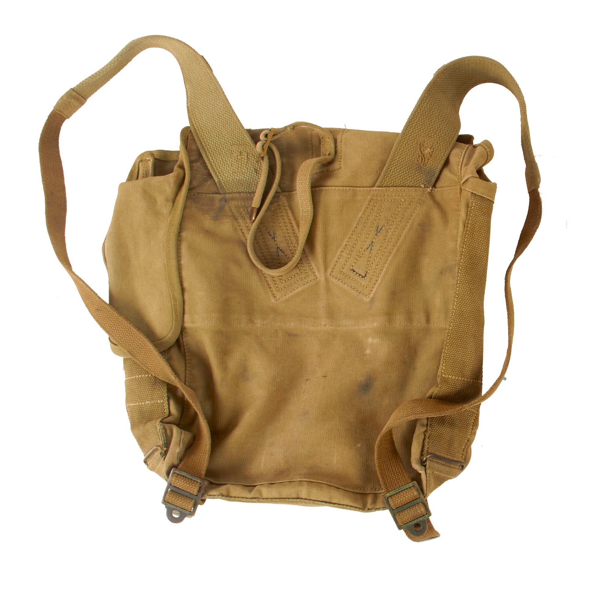 Original Items: Only One Set Available. The “782 Backpack system” (1941 haversack and knapsack) was introduced in mid-1942 to replace the M1928 haversack. It consisted of the upper portion, the haversack and the lower portion, the knapsack. Can be worn in various combinations depending on the requirements of field gear and equipment.