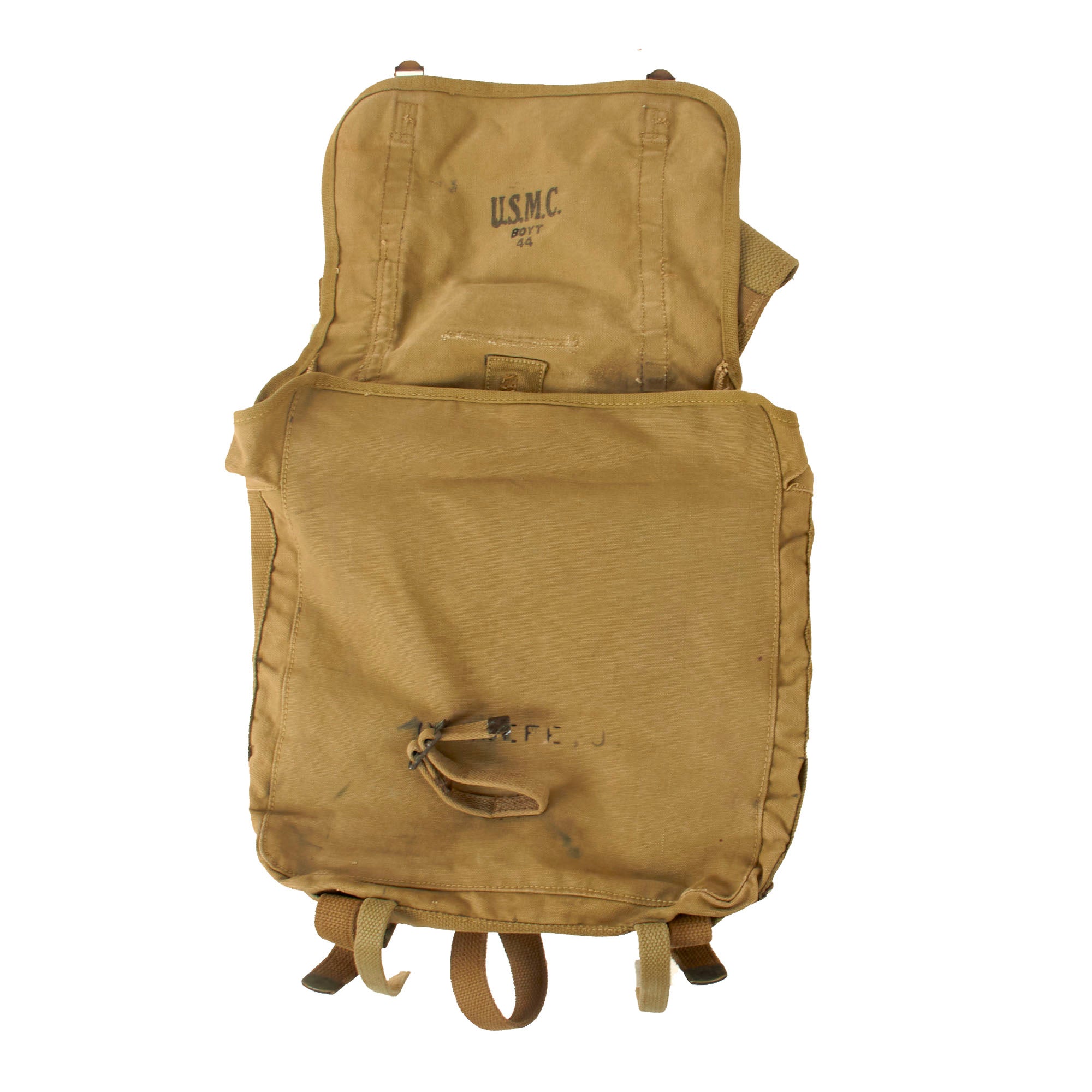 The front flap and under the front flap are stamped with the name O’KEEFE, J.. There were several marines with this name in the muster rolls including John J. O’Keefe, James E. O’Keefe, and John V. O’Keefe, so we cannot identify the marine who carried this.