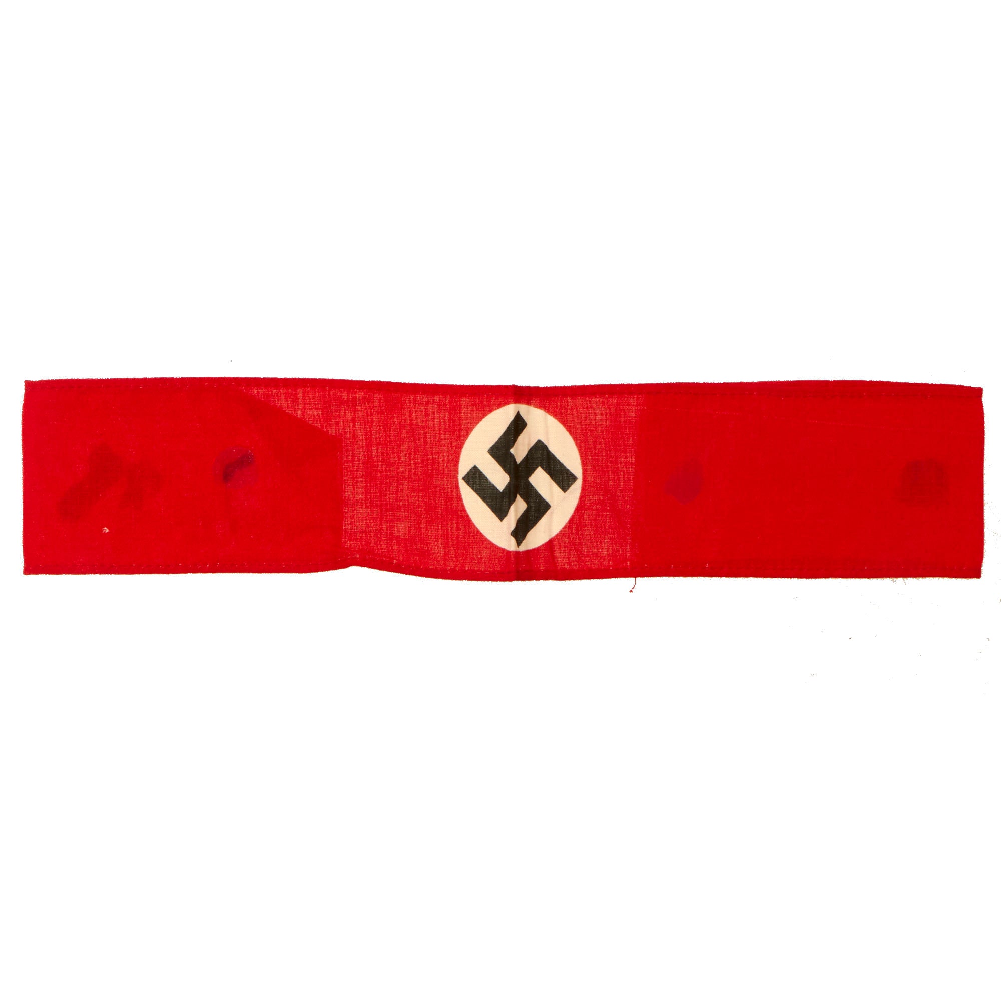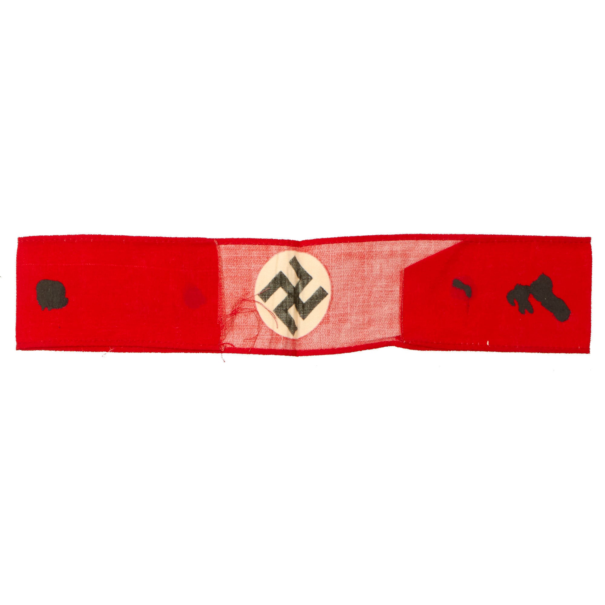 Nearly every military, civil, political and paramilitary organization in existence during the Third Reich used armbands. Armbands were worn on military and civilian uniforms and also on civilian clothes, from suit jackets to work clothing. They were used to denote membership in organizations, to indicate a specific role or function of the bearer, and as insignia of rank. Many organizations would change the design of their armbands over time, which added to the variety produced. These were manufactured in countless variations, ranging from simple printed bands to elaborately hand-embroidered pieces of the highest quality. Some NSDAP armbands were worn by all members of large organizations and were made by the millions. Others were intended for use at a specific time and place and were unique. Many types were made in very limited numbers. Some bore metal insignia or special identifiers that indicated the wearer’s rank, unit affiliation, or nationality. Armbands were sometimes but not always marked with ink stamps by the issuing authorities.