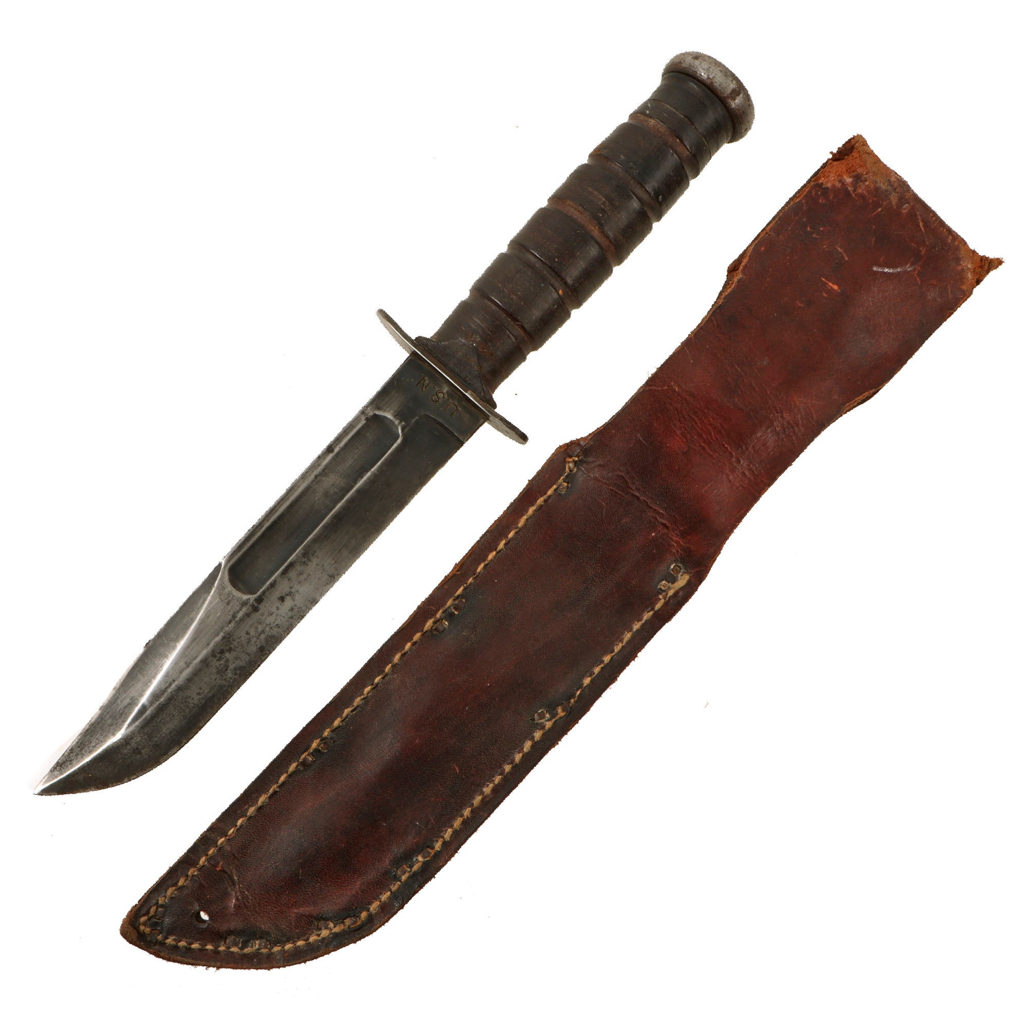 Original U.S. WWII USN Mark 2 KA-BAR Early Nut Pommel Blade-Marked Fighting Knife by CAMILLUS in Original USN Leather Sheath
