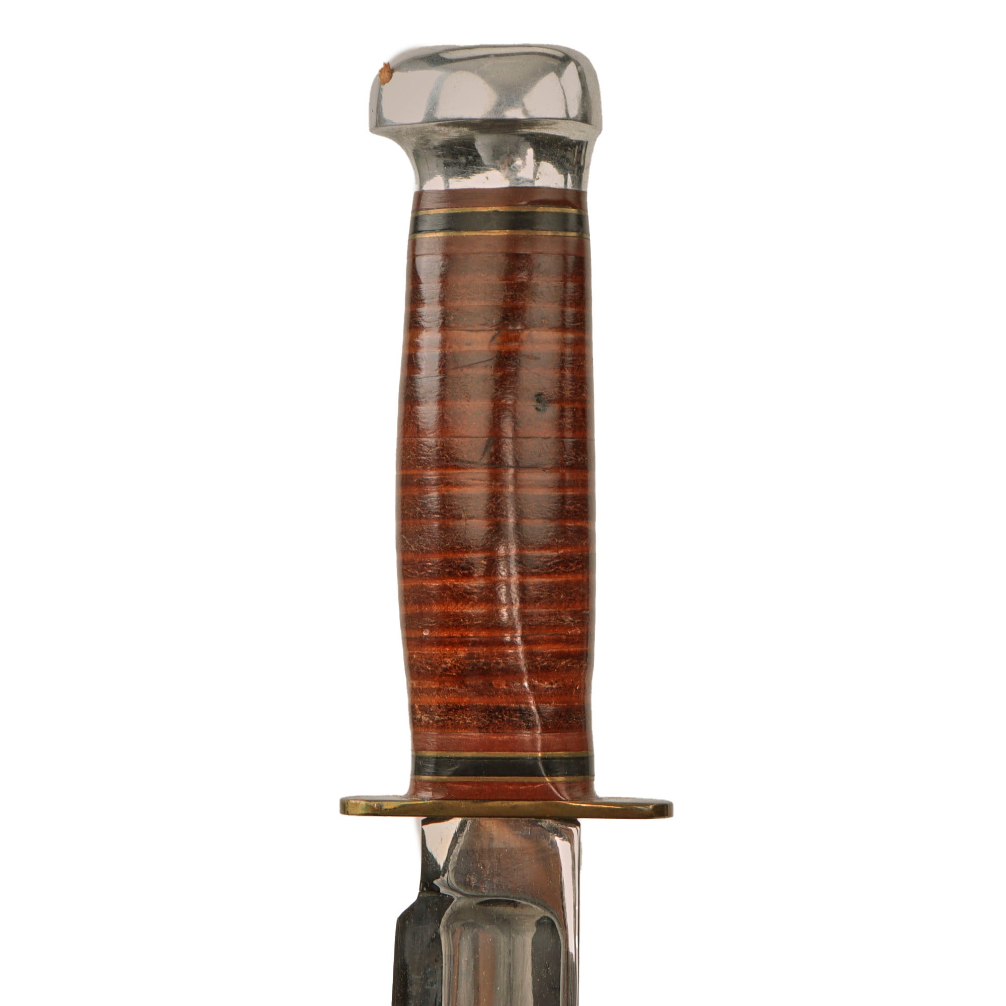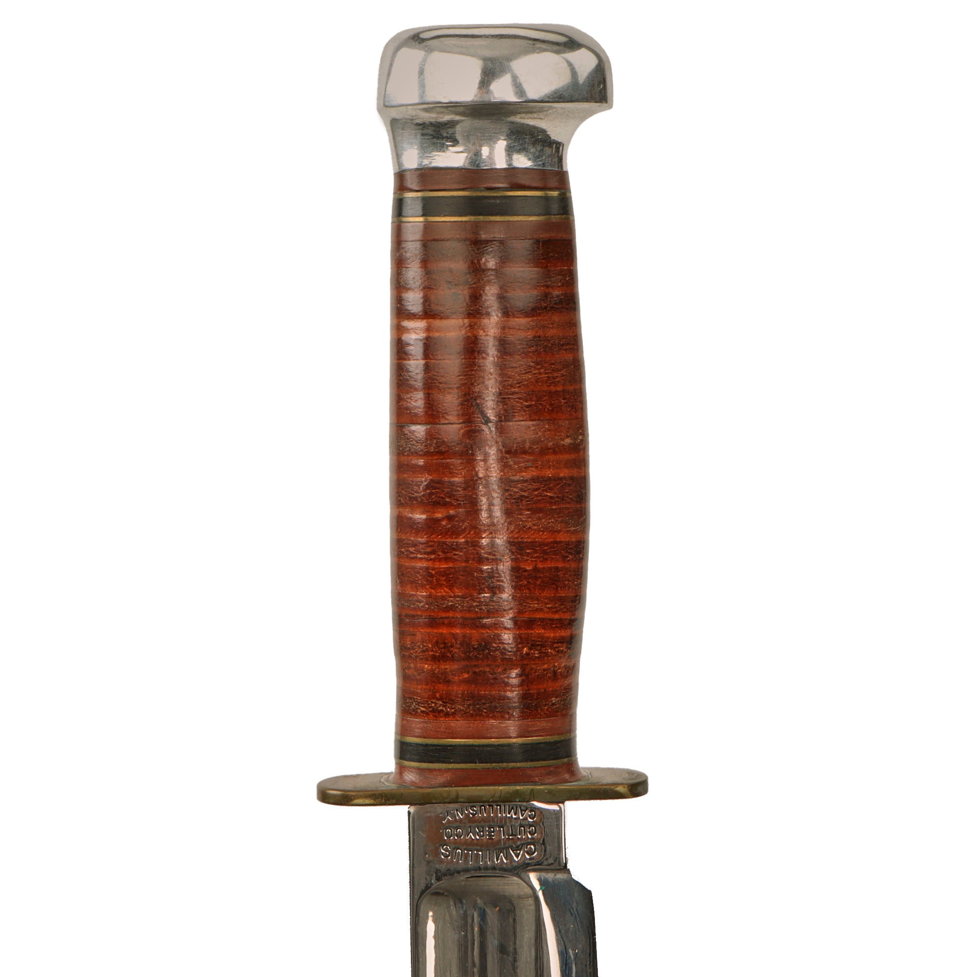Original Item. Only One Available. This is an interesting knife made very closely to the style of the USN Mark I fighting knife, but with a chromed blade and pommel with the only marking being on the ricasso: