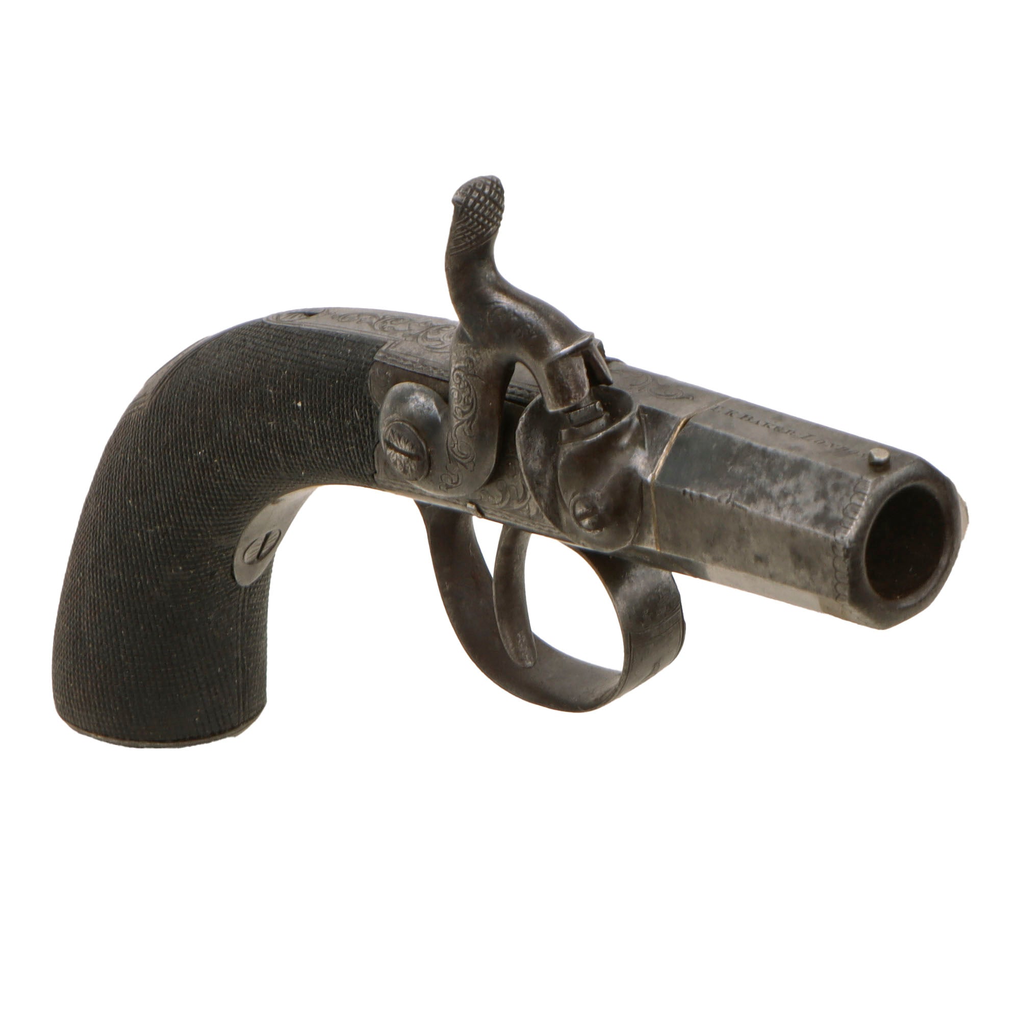 Original Victorian Era British Single Shot Side Hammer Percussion "Belly Buster" Vest Pistol by Thomas K. Baker of London - circa 1840