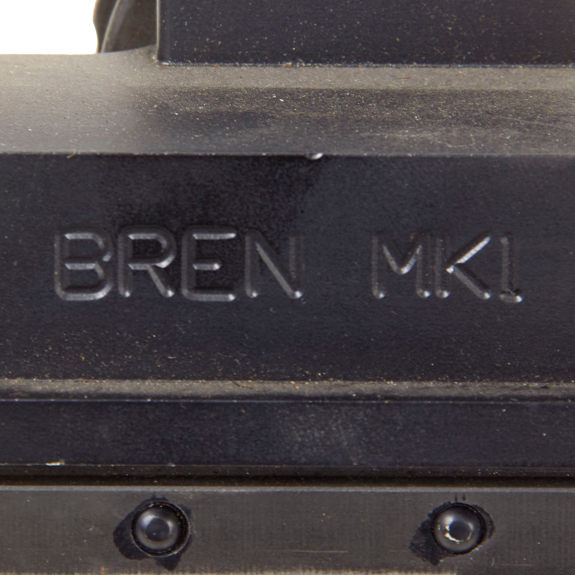 Original Item: Only One Available. This is a really nice example of the iconic Bren MkI* Light Machine gun, as used by British forces during WWII. It is Built from Original British WWII Parts on a BATF compliant non-firing solid aluminum dummy receiver, which has had an original receiver nose piece attached. As 75% of the total length has been replaced by solid aluminum, it is totally legal to own without a license of any kind. Every part on this display gun is original WWII manufacture other than the aluminum portion of the display receiver. The barrel on this example has not been demilitarized, as it was imported long ago, and still shows clear rifling on the interior, though it is a bit worn. It is correctly marked Mk1* on the left side, and has the stainless steel flash hider on the front, which was removed when the MkII was patterned.