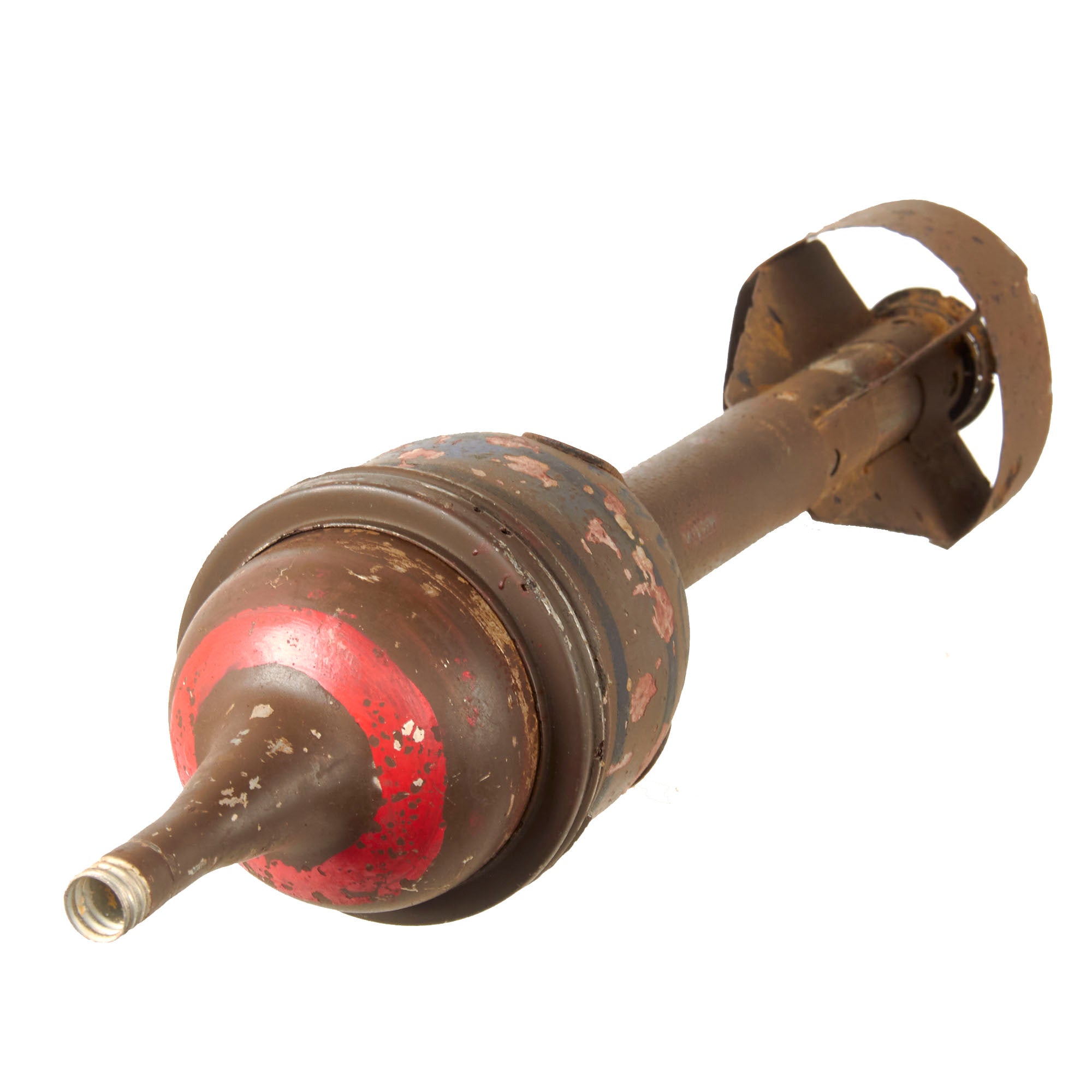 Original Item. Only One Available. This is a very nice Inert British WWII PIAT Anti-Tank Bomb Launcher HEAT (high explosive anti-tank) "Bomb" round. This example retains its original factory paint and stamps, with a date of 11/44, for November 1944. This example is missing the fuze cap but still displays very well without. Like all deactivated ordnance, this PIAT Round is Not Available for Export.