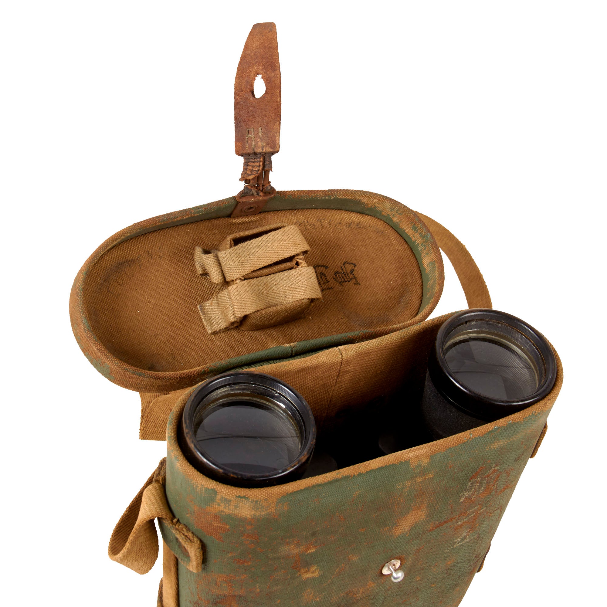 Original Item: Only One Available. This is a nice set of WWII issue Japanese army officer binoculars in original tropical carry case, offered in very good condition. The binoculars are fully functional, with each side having an independent focus diopter control. Optics are mostly clear, and able to focus accurately, though the interior mirrors and optics could definitely use a cleaning.