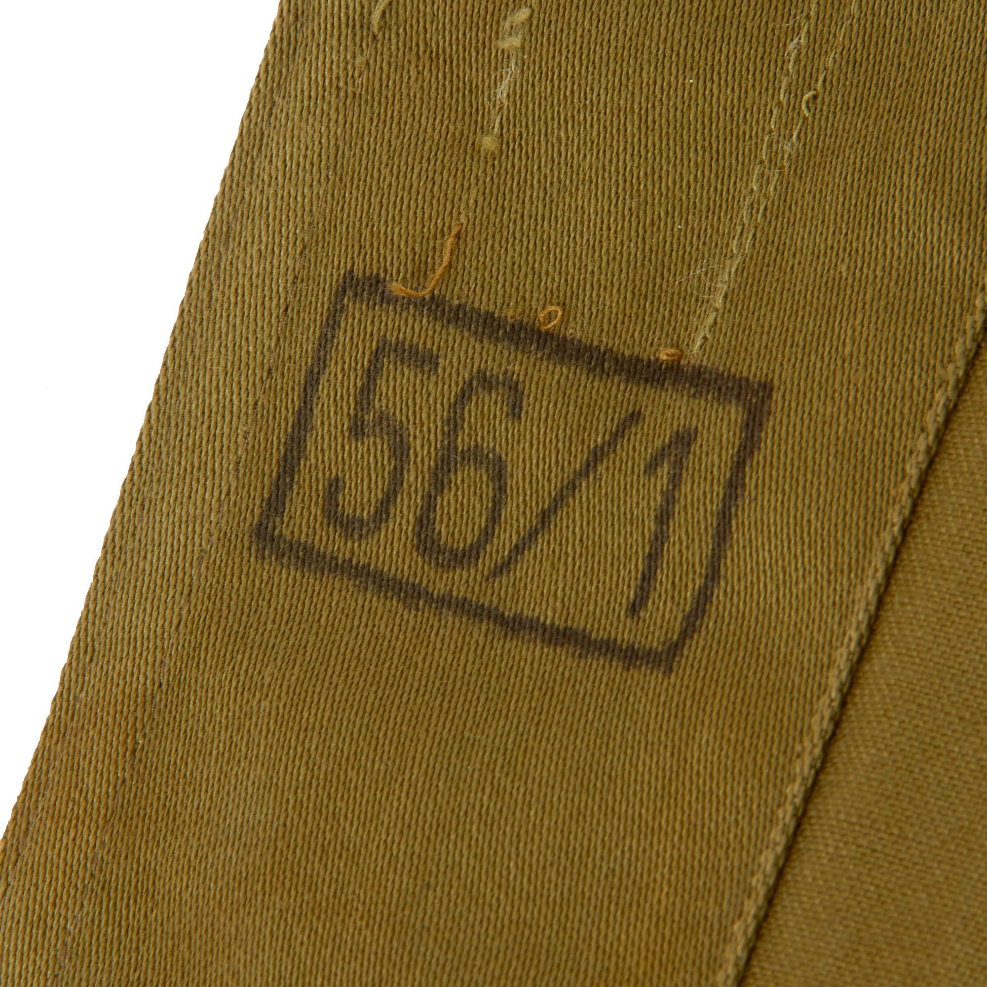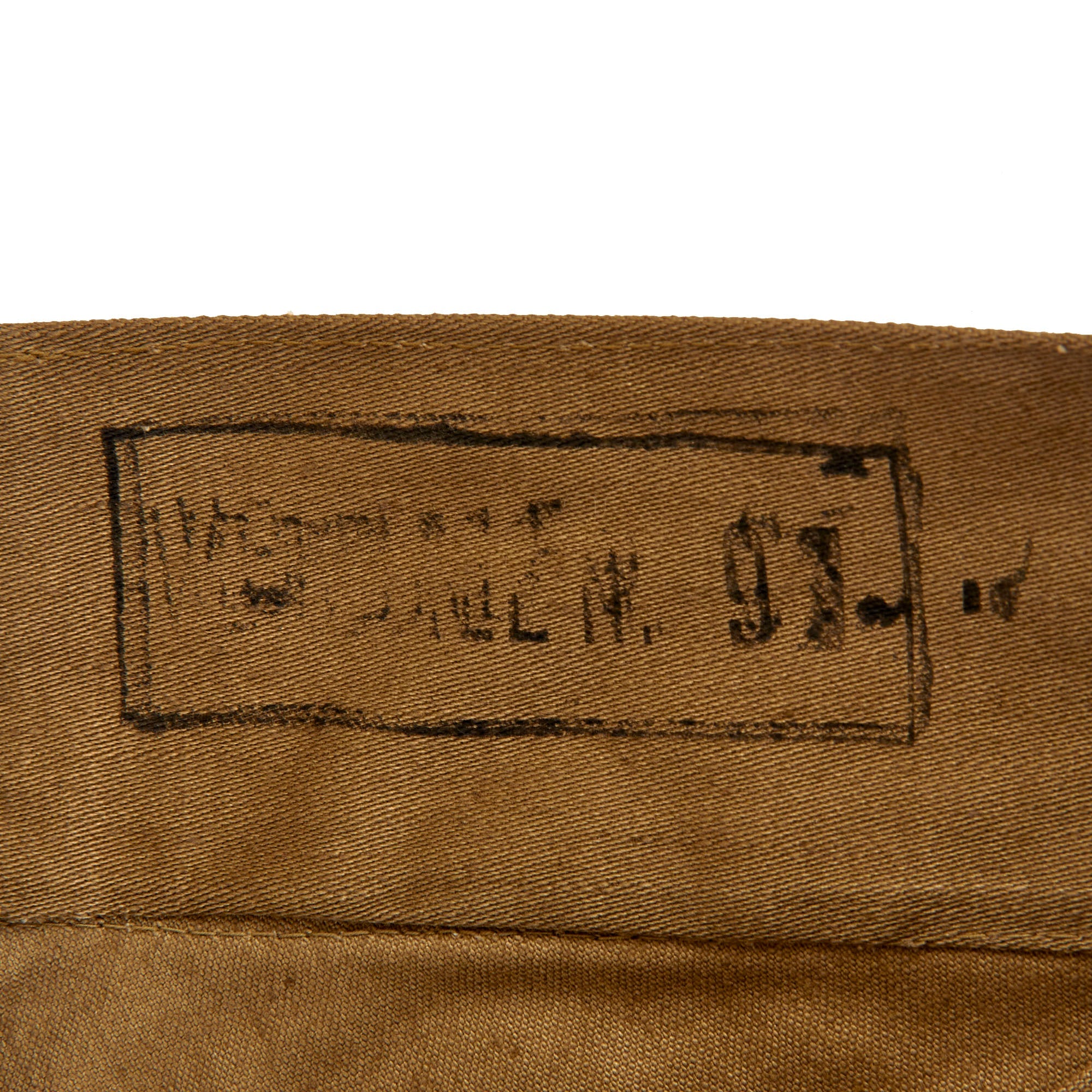 The included trousers are in great order and have multiple stamped ink markings on the interior, one of which appears to be a maker’s marking next to the date, 1943.
