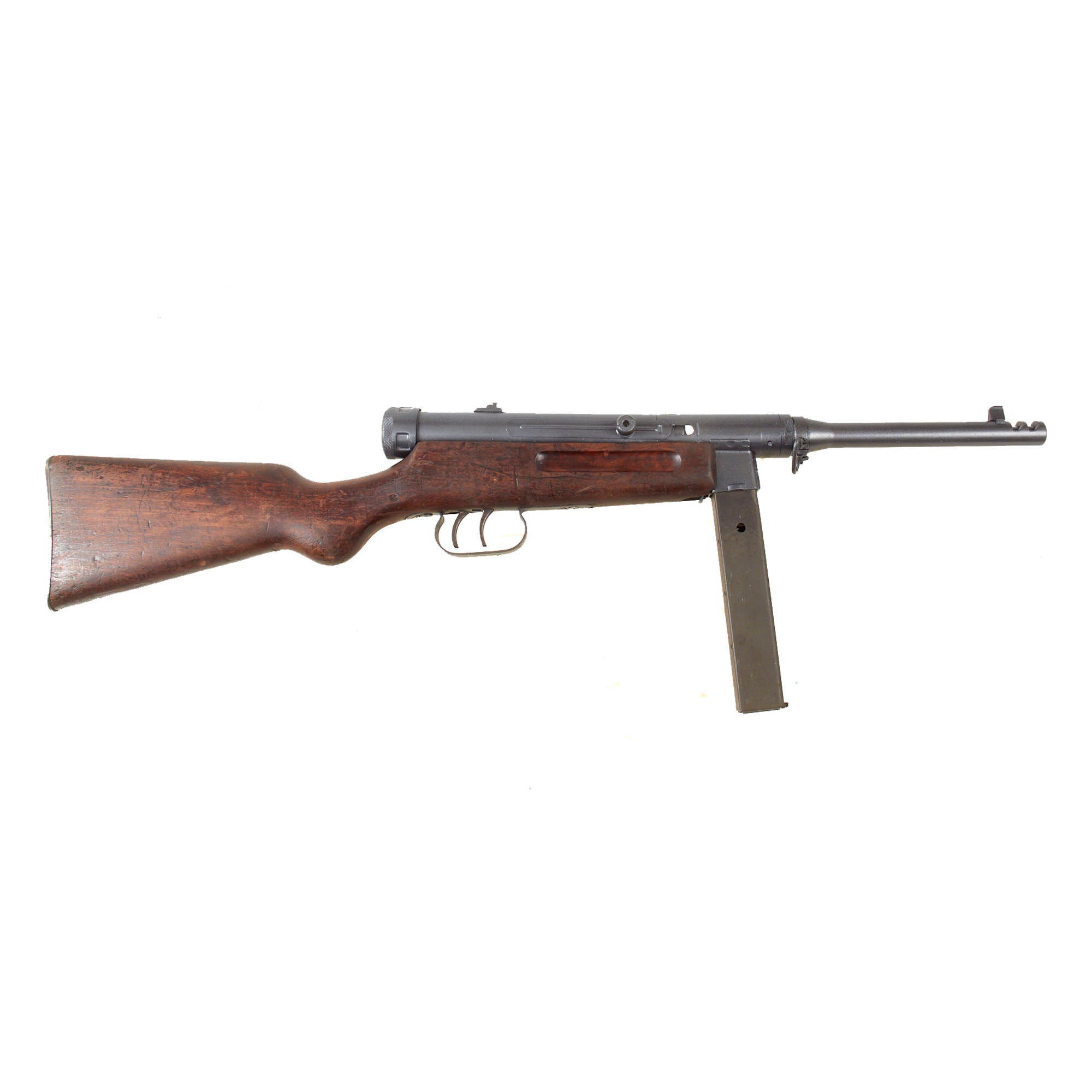 The Germans used this weapon in such frequency that they gave it an official denotation; The MACHINENPISTOLE 738(i), which was also known as the Italian Beretta Model 38/44 smooth barrel SubMachine Gun. This WW2 SubMachine Gun was first introduced in 1942 as the Model 38/42 with a fluted barrel, and very quickly became a favorite not only in Mussolini's Italy but with the German Army too! Chambered in 9mm parabellum, this fired the same cartridge as the German Mp 28, MP 34(ö), and the legendary MP 38/40 Schmeisser SubMachine Guns. Later in 1944 the Barrel flutes were omitted, giving rise to the MP38/44. Surprisingly well built, originally all Italian weapons declined in quality as the war progressed, but the M-38/42 and M-38/44 were stand out exceptions and remained a great favorite of the Germans as can be witnessed in countless WW2 photographs.