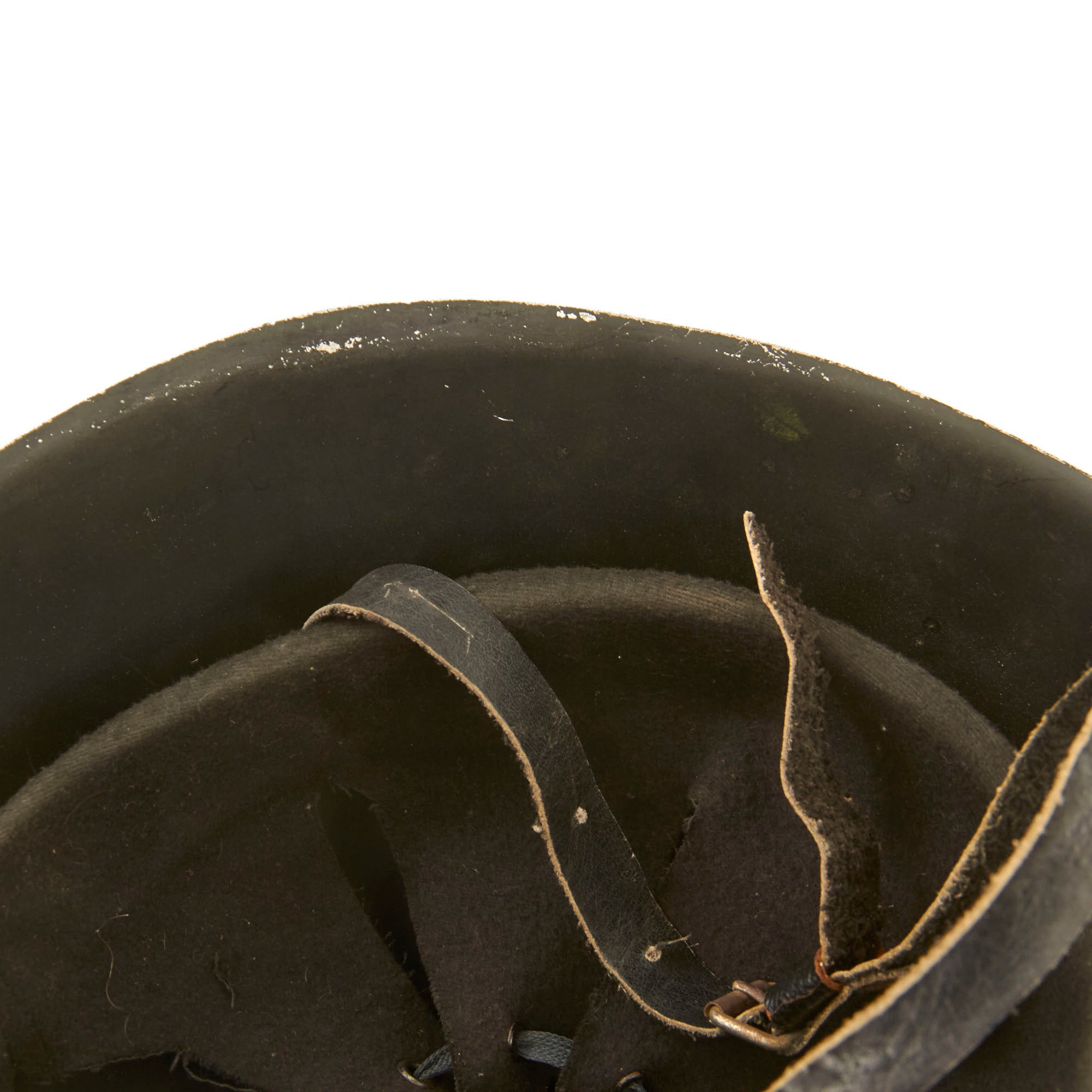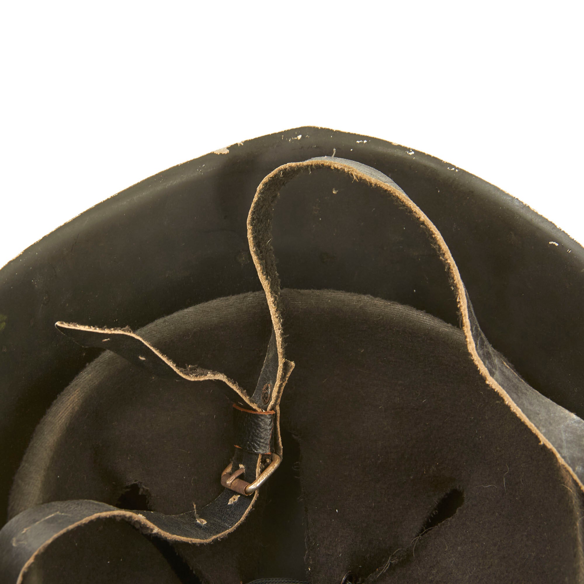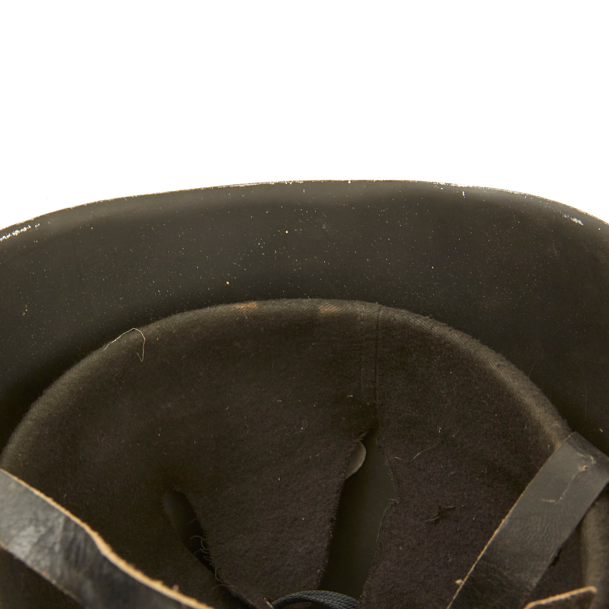 The liner is a black felt variation and is very lightweight. The chinstrap is leather and is also much more lightweight than the norm.