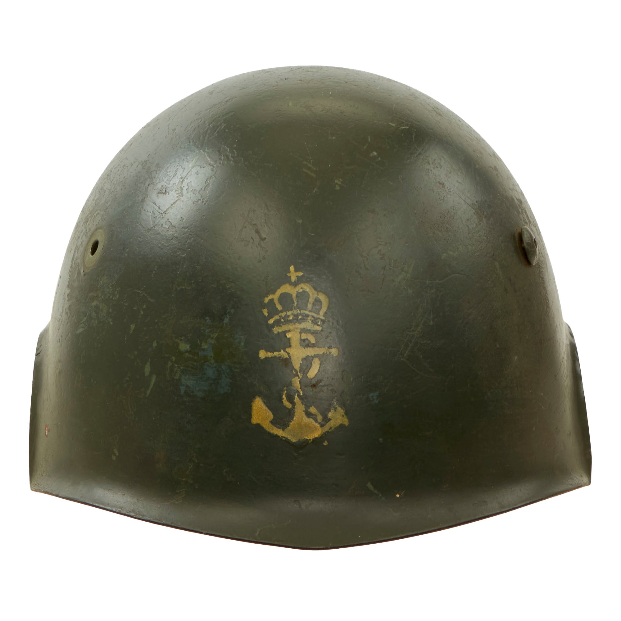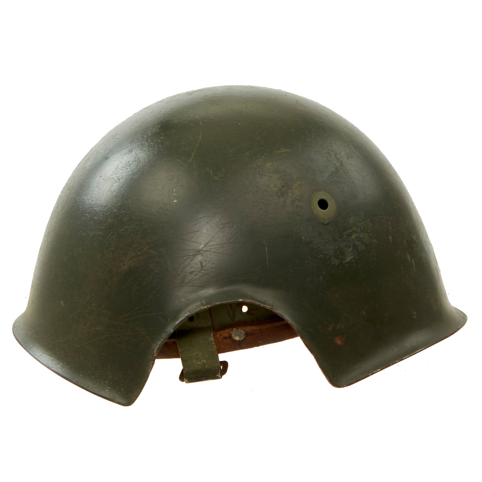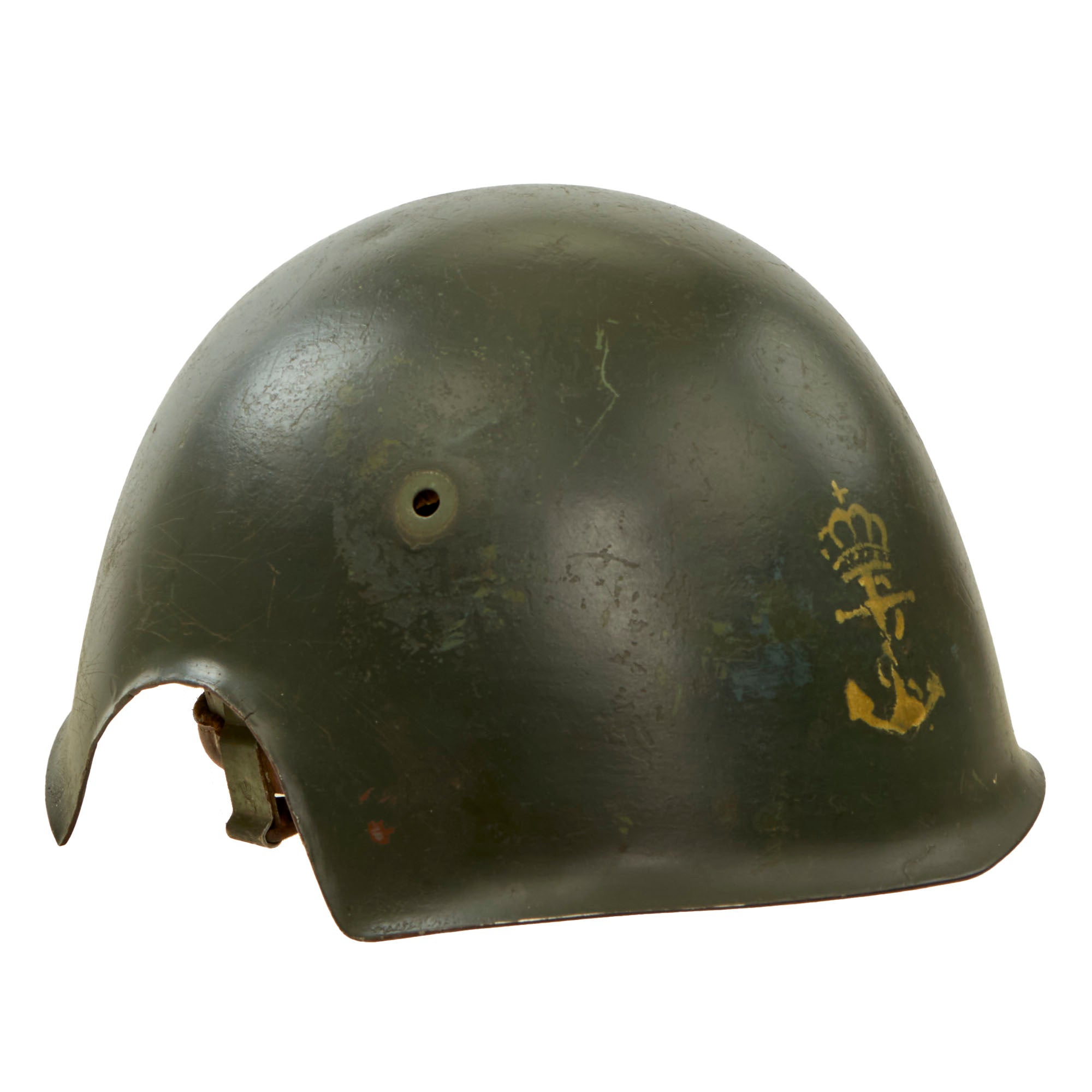 Original Item: Only One Available. The M33 Helmet (Elmetto Mod. 33 in Italian) is a steel combat helmet designed in the 1930s in Italy, and was the standard combat helmet of the Regio Esercito up to World War II, and of the Esercito Italiano well into the Cold War. Designed by Nicola Leszl for the Mussolini Government, these have become extremely hard to find on the collectors market today, especially WWII examples that have not been refurbished.