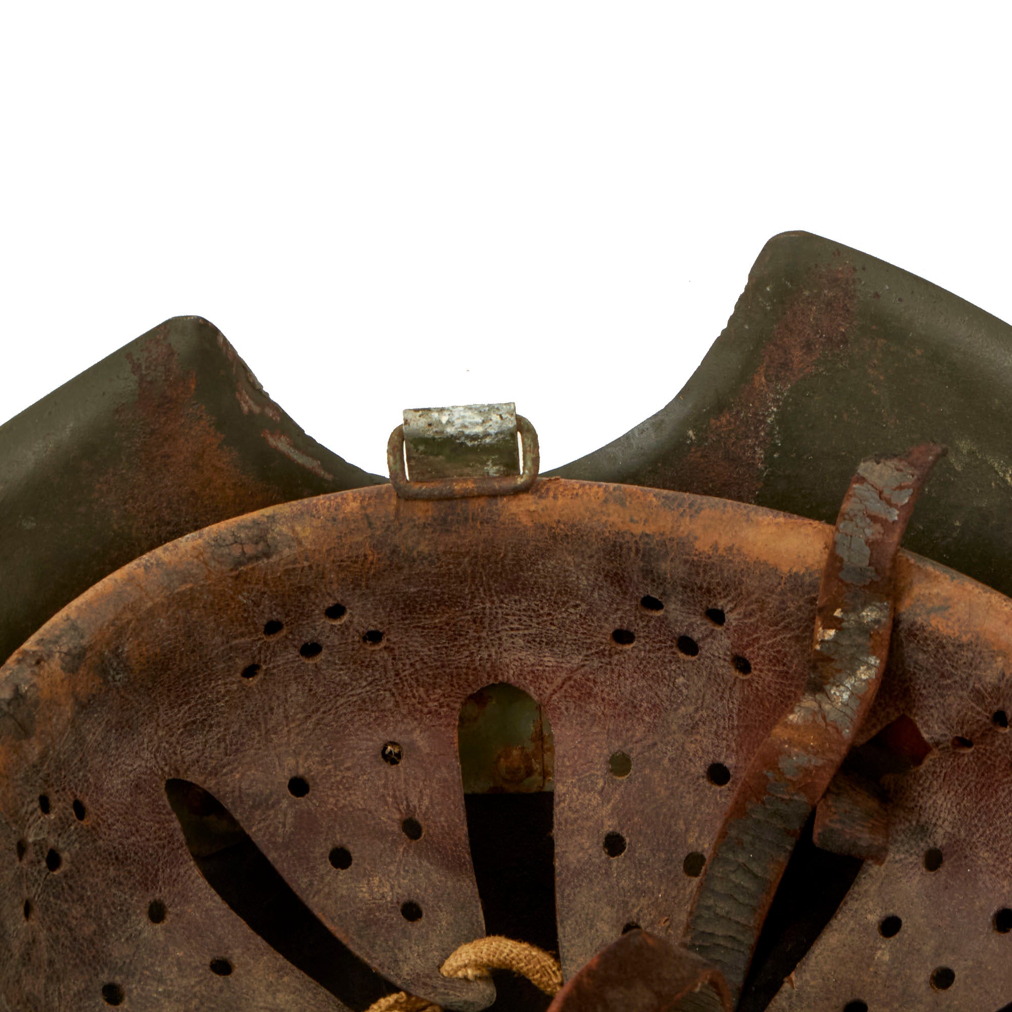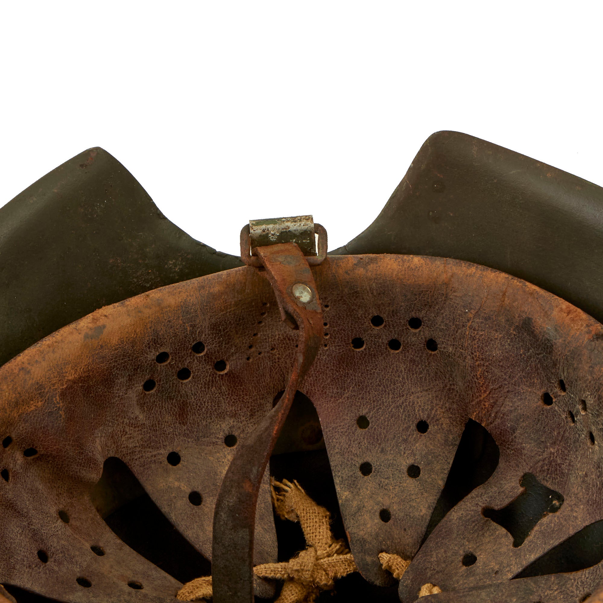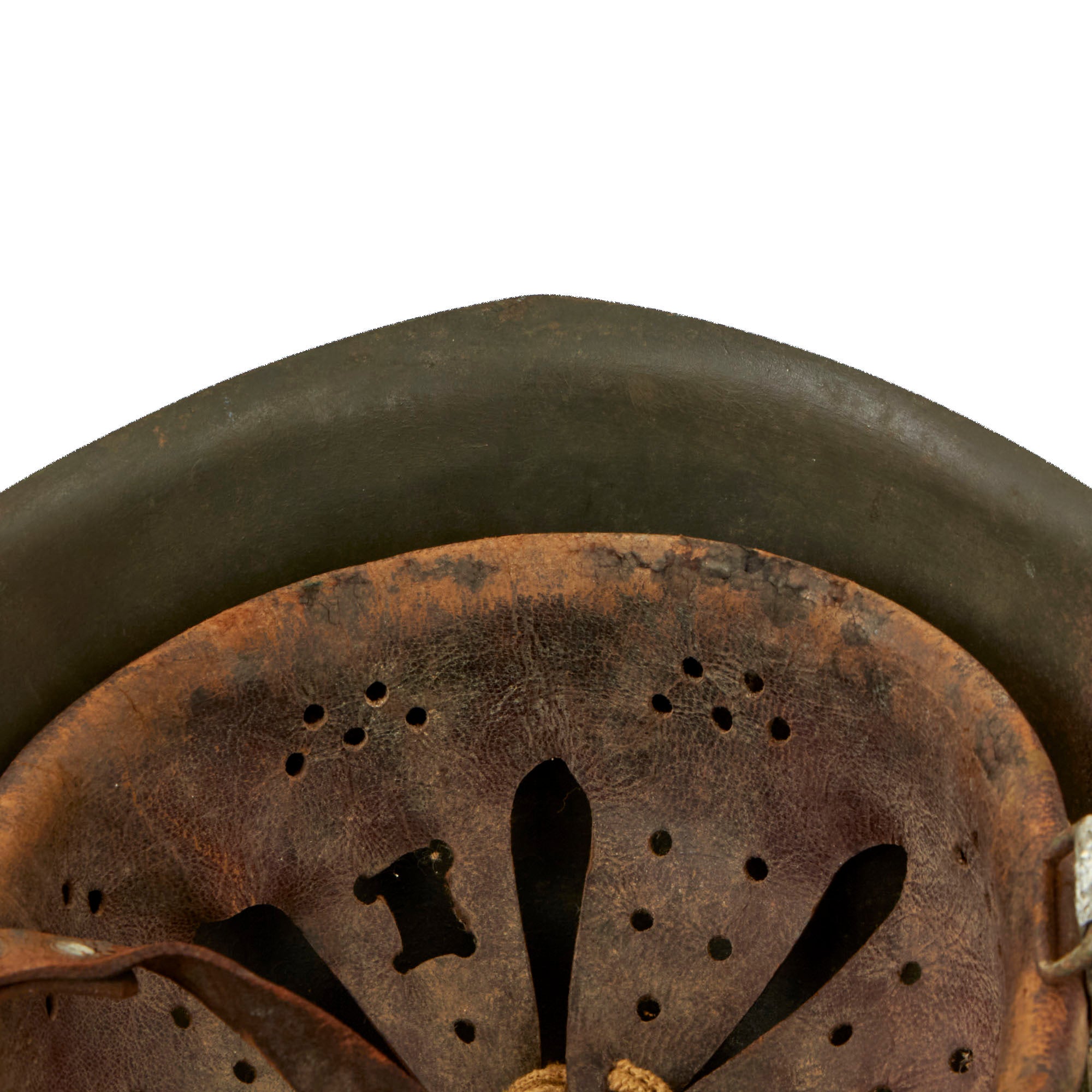 Original Item: Only One Available. The M33 Helmet (Elmetto Mod. 33 in Italian) is a steel combat helmet designed in the 1930s in Italy, and was the standard combat helmet of the Regio Esercito up to World War II, and of the Esercito Italiano well into the Cold War. Designed by Nicola Leszl for the Mussolini Government, these have become extremely hard to find on the collectors market today, especially WWII examples that have not been refurbished.