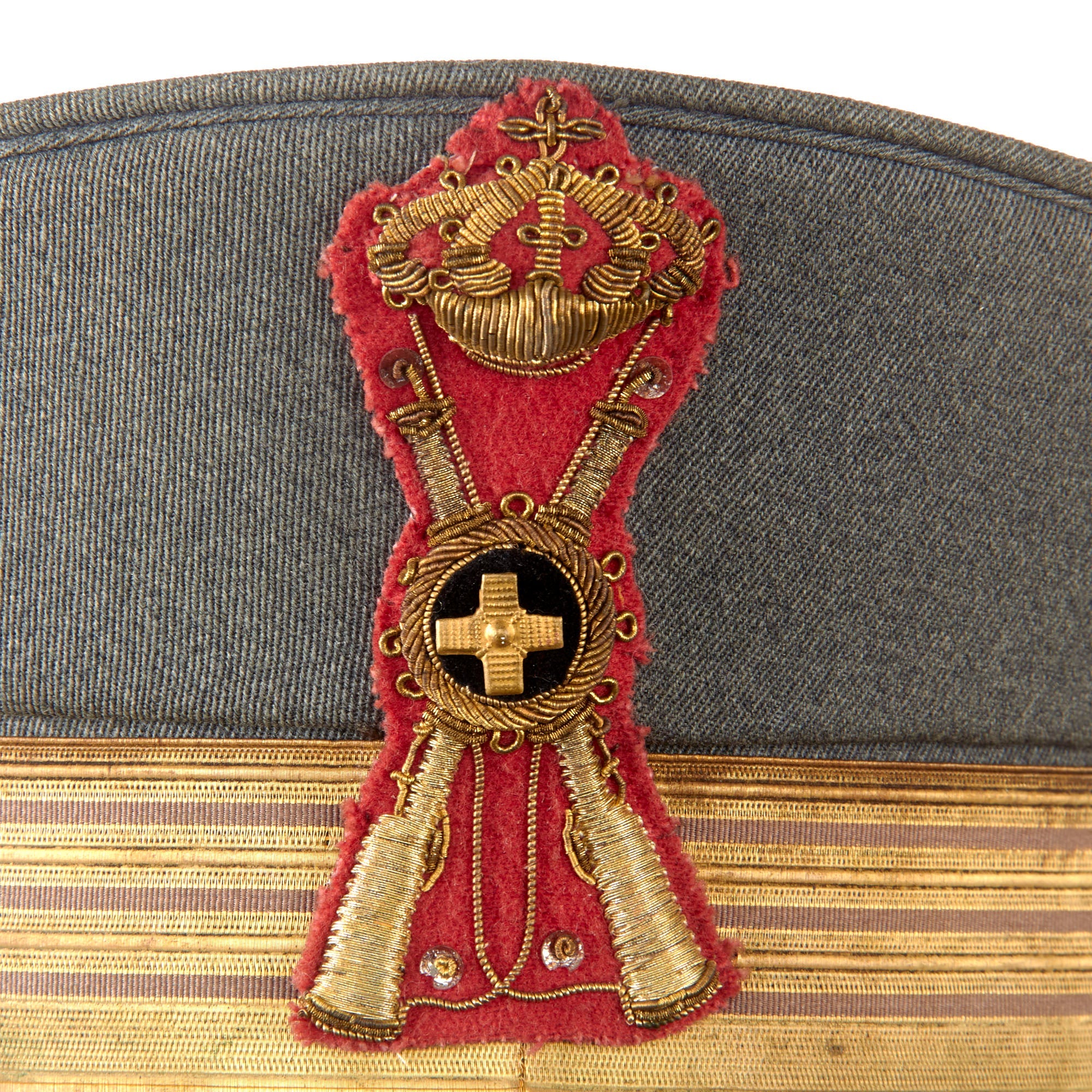 The cap is in outstanding condition with the visor and chinstrap both in good shape, the latter being held in place by two Italian Infantry buttons. The Colonnello (Colonel) cap band is in great shape with some staining, and the cap is virtually free of moth nips that we can see.