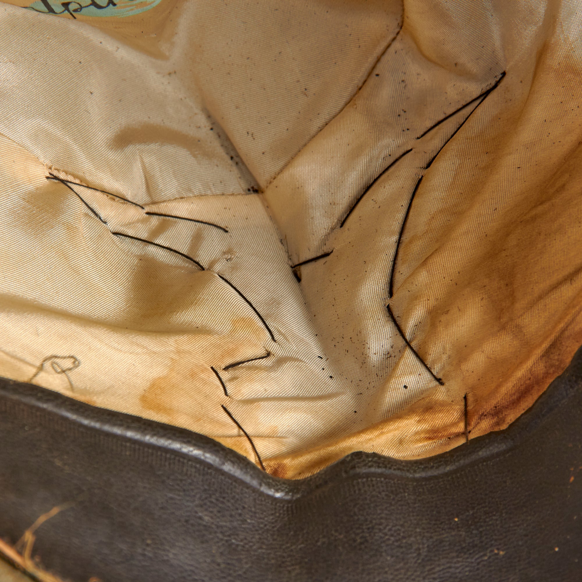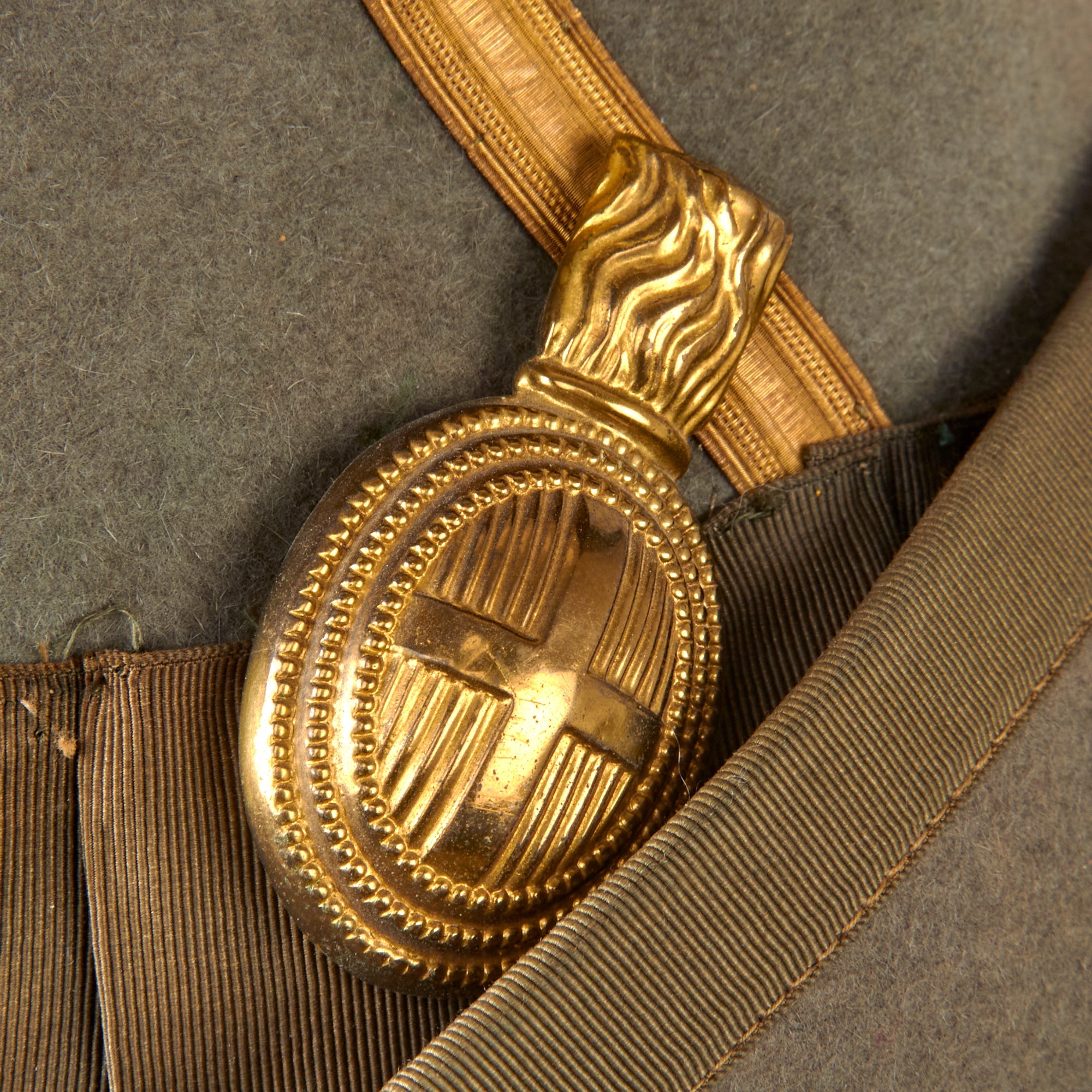 This example has a lovely braided chinstrap still intact. The sweatband is marked Salvatore Mazza / CONZALIANO. The sweatband has lost very much of its stitching. The cap is roughly Size 7. A very nice example of a scarce decorative military cap, ready to display!