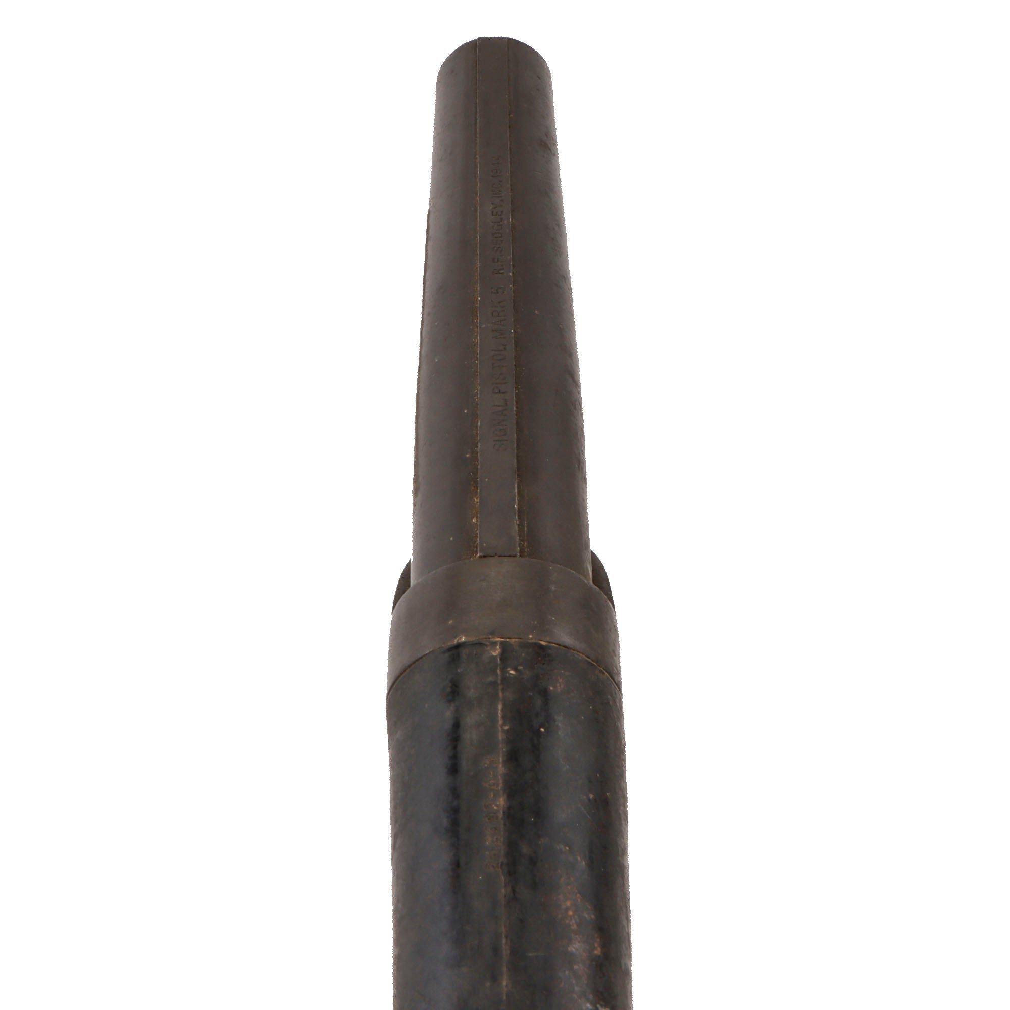 Original Item: Only One Available. This is a very good example of a 22mm parachute flare signal pistol Sedgley Signal Pistol, Mark 5. As part of consolidated wartime efforts, lifeboats for all sea going Merchant Marine vessels were to have a standard complement of emergency provisions overseen by the United States Coast Guard (USCG). They in turn had direct coordination with the US Navy.
