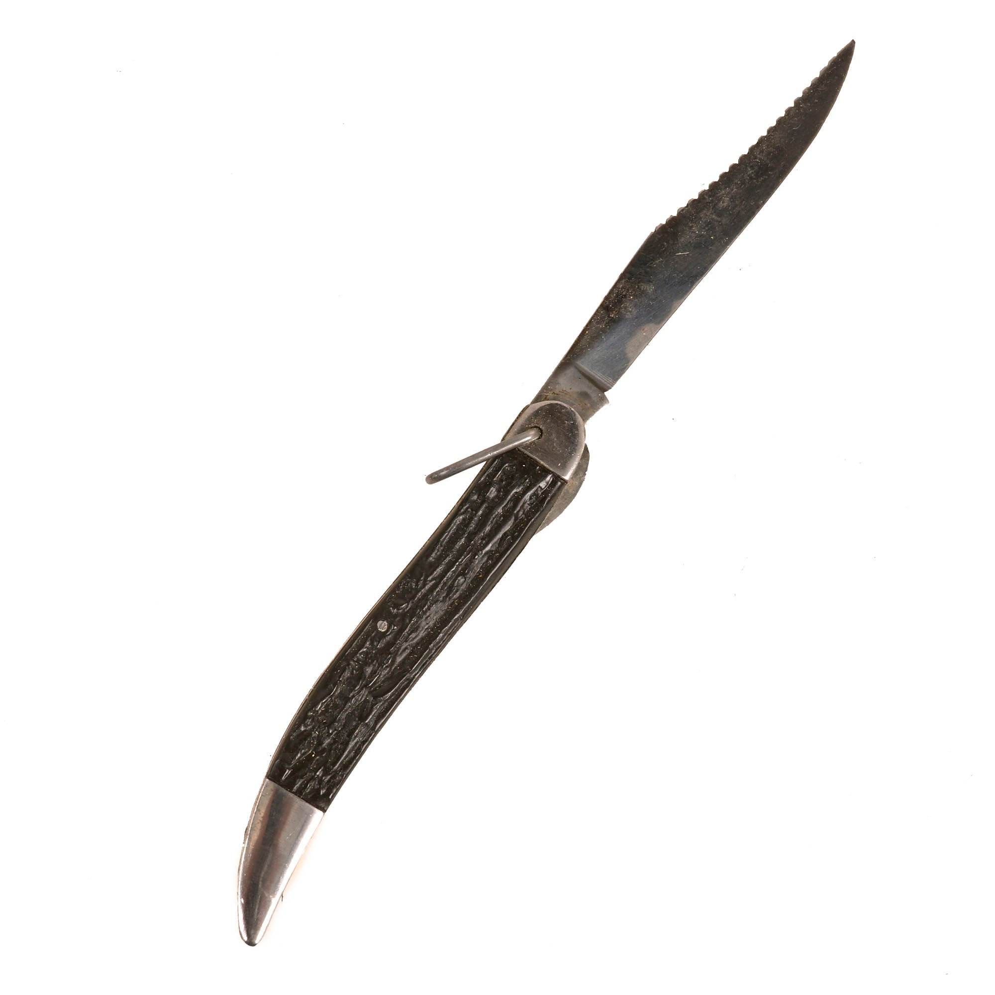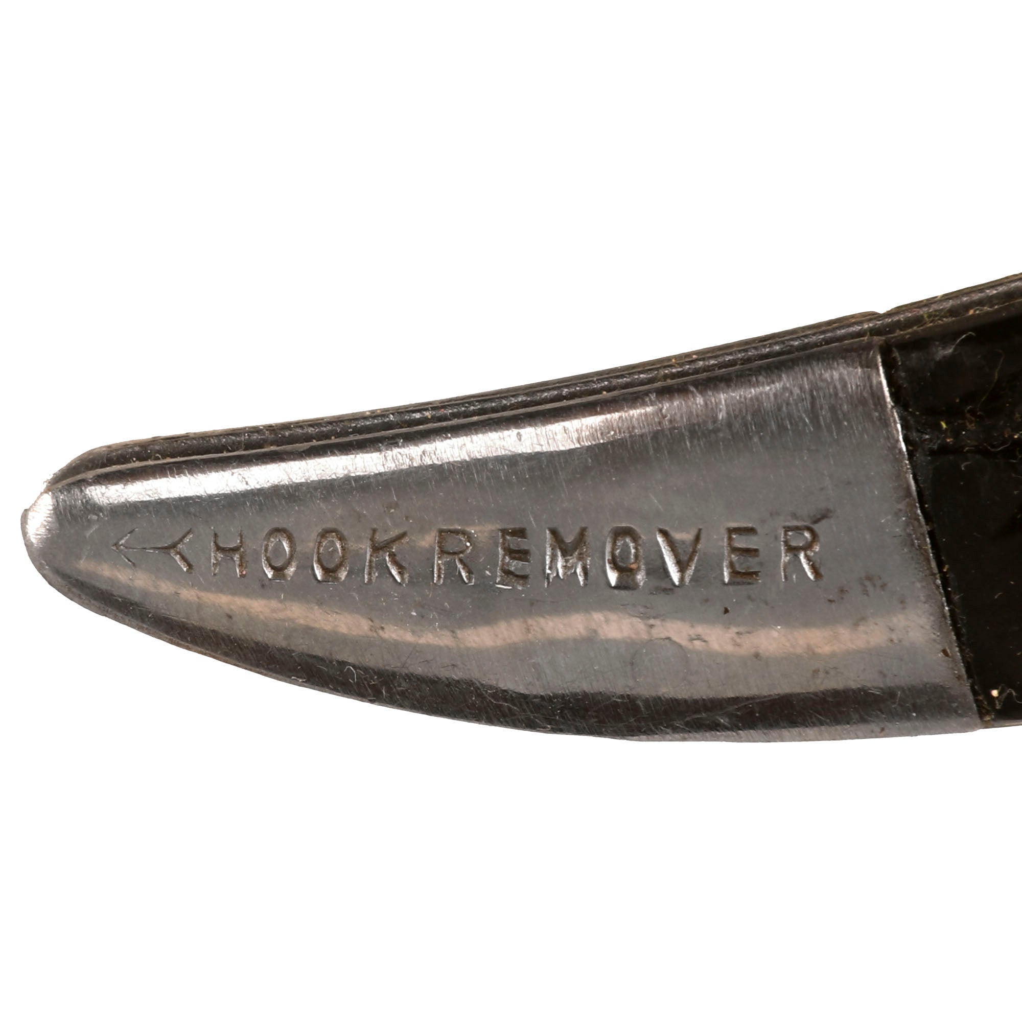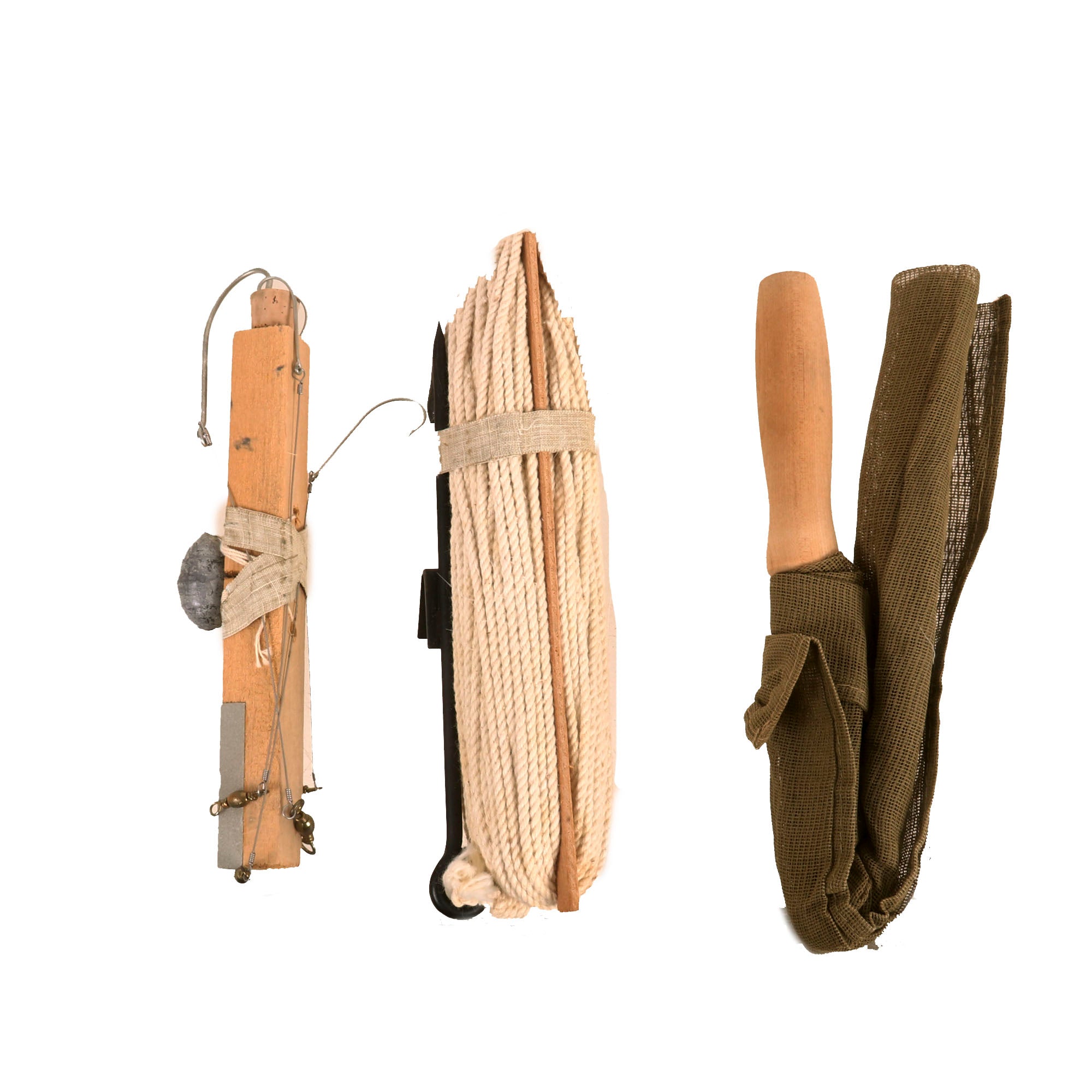 There’s also a pair of gloves, a line-cutting knife by Imperial of Providence, Rhode Island, and a myriad of fishing hooks, lures, and lines. The kit when fully unrolled measures 14 x 29”.
