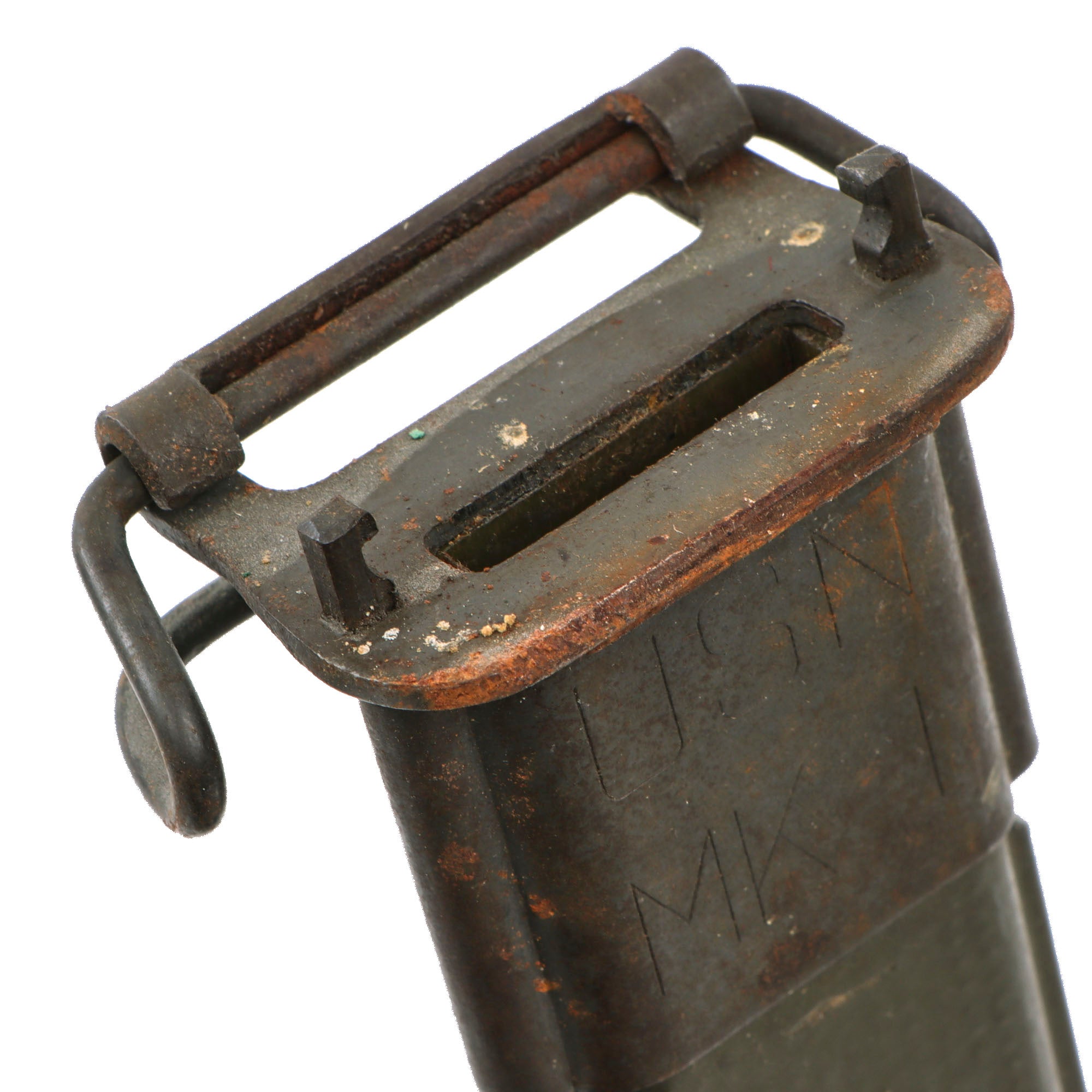 Original Item: Only One Available. This is a very good condition U.S. Navy Mark 1 Plastic Training bayonet for use with the U.S. Navy Mark 1 Dummy Training Rifle, complete with the correct WWII Issue USN Mk1 scabbard. These training rifles were all produced by the Parris-Dunn Corporation of Clarinda, Iowa, who were not set up to manufacture the bayonets.