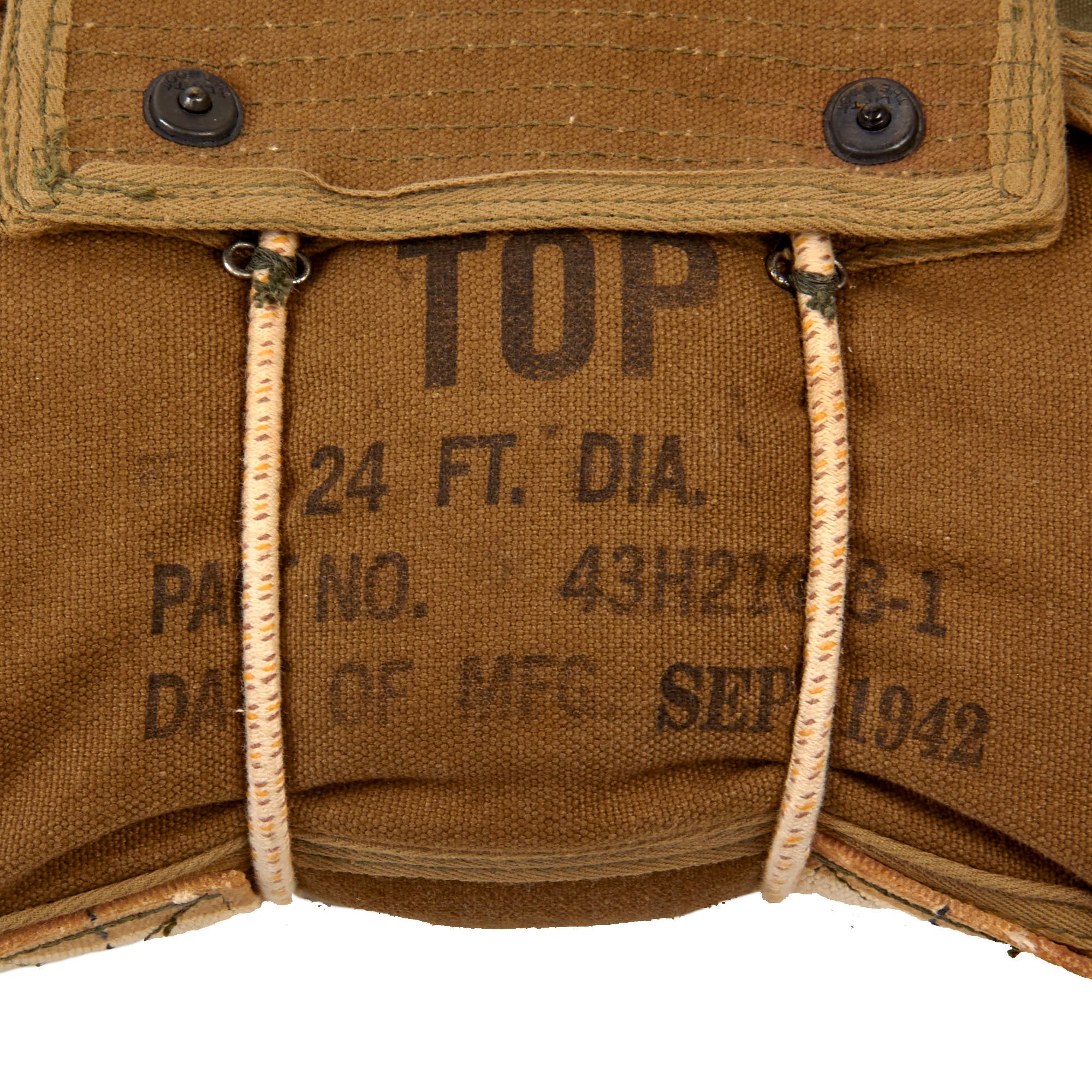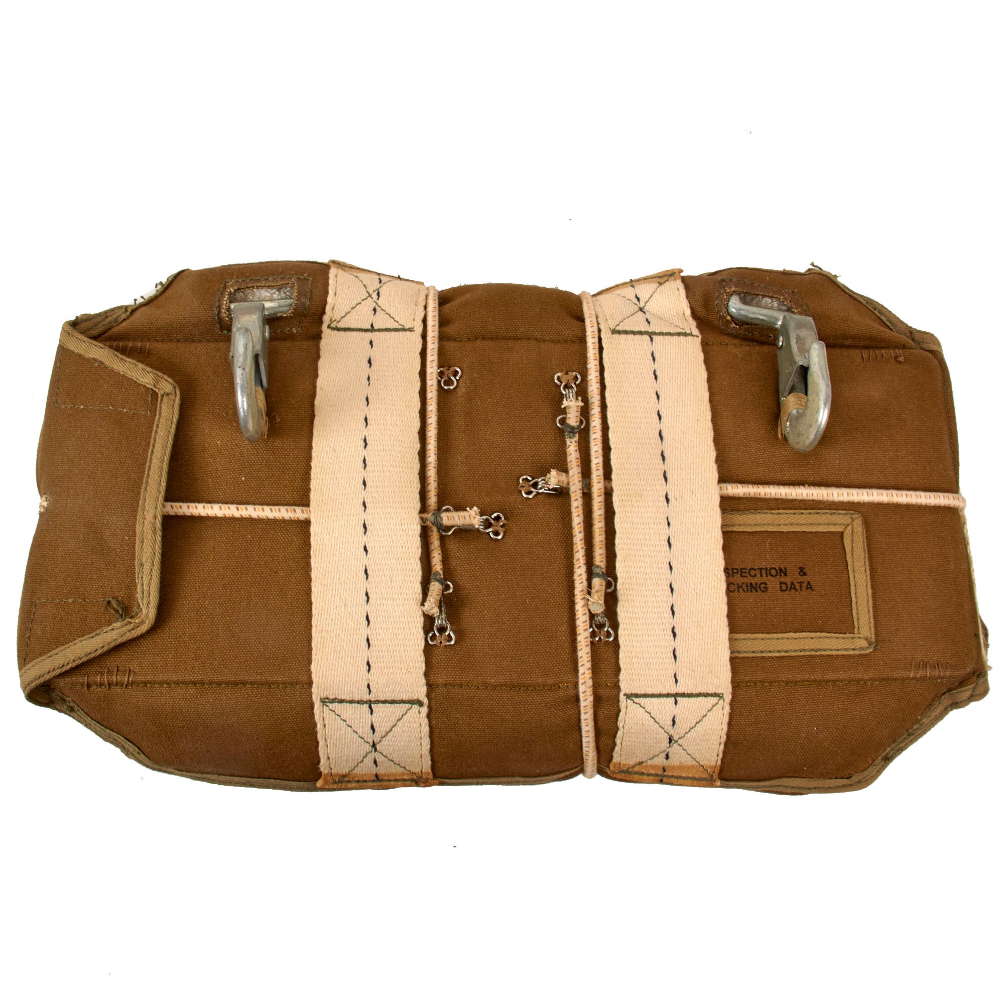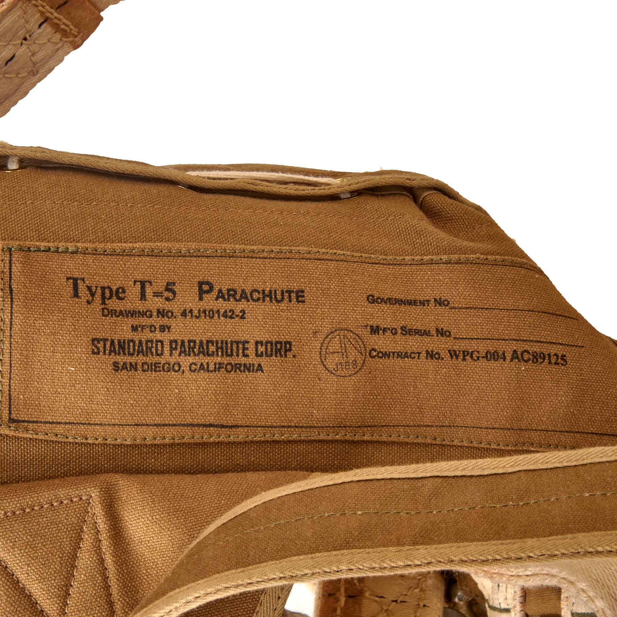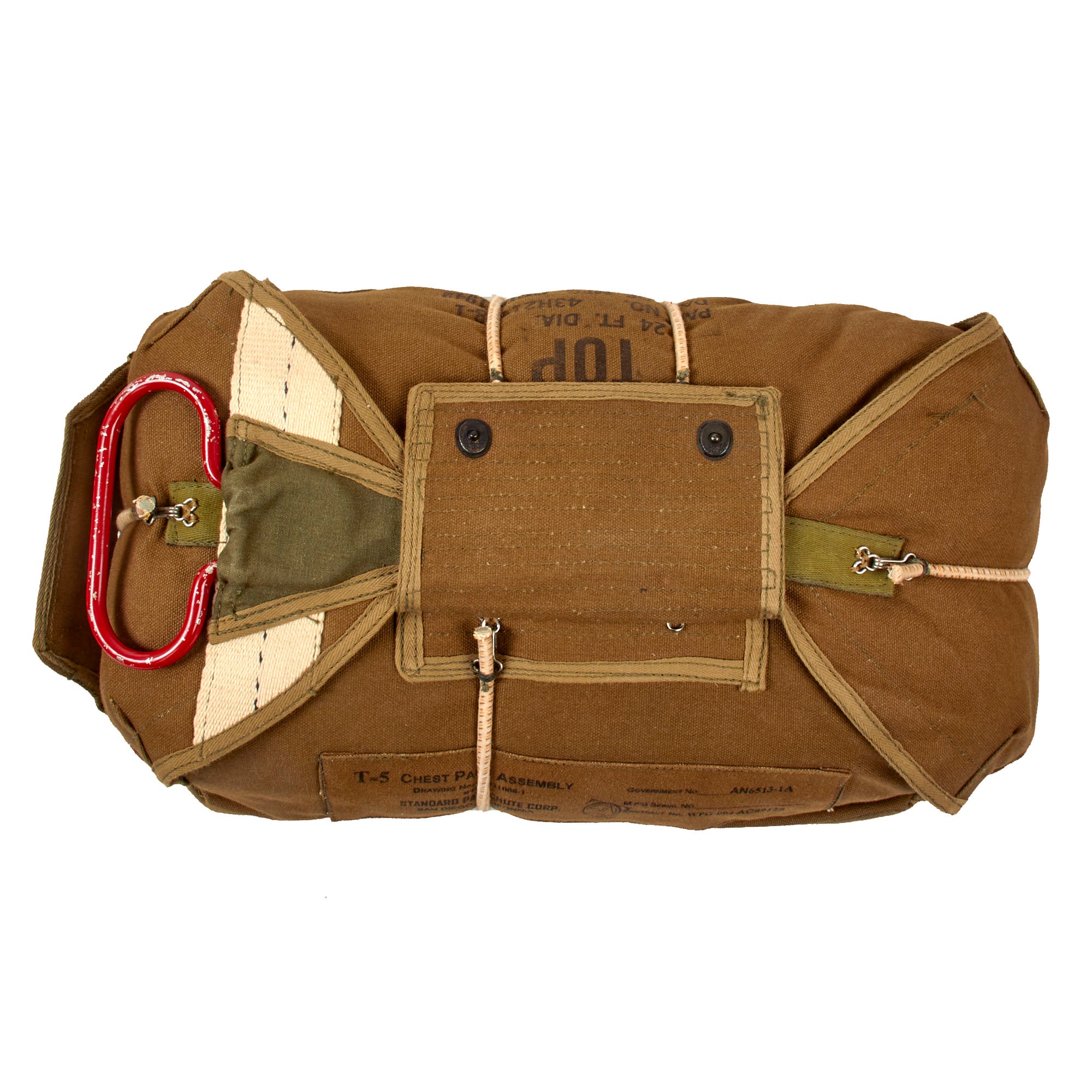 Only one available: This high end reproduction of the famous T-5 is in great condition. The T-5 parachute was standardized in June 1941 and many of these first pattern chutes were heavily employed in all theaters of action. They saw extensive use in training, the early airborne operations in North Africa & Sicily, as well as the daylight drop of Operation Dragoon in Southern France. White T-5's remained standard throughout the war in the Pacific theater of operations such as Nadzab, Noemfoor, and Corregidor.