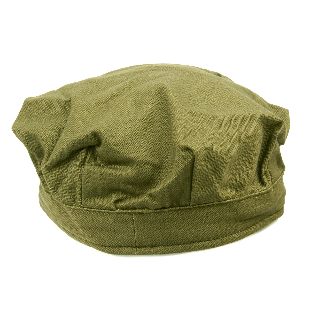 First issue fatigue and field cap made in sage green HBT. Patterned from original, unissued and unaltered samples, our caps feature 8 pleats and 4 air vents in the body, and the bill is reinforced with 8 rows of stitching. This cap was initially intended for armored troops and mechanics, but was quickly adopted by all army personnel. The HBT cap was worn by all troops from late 1942 on wards. The bill is approximately 2 inches long.