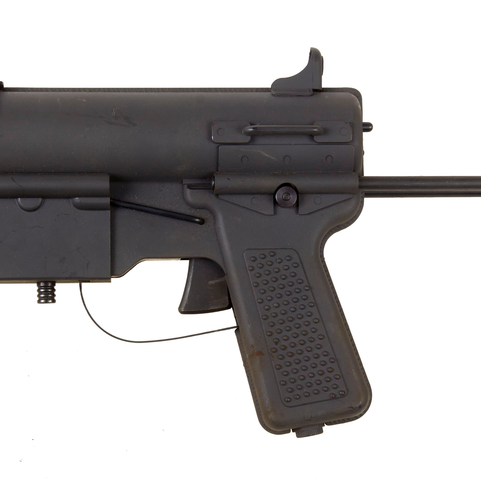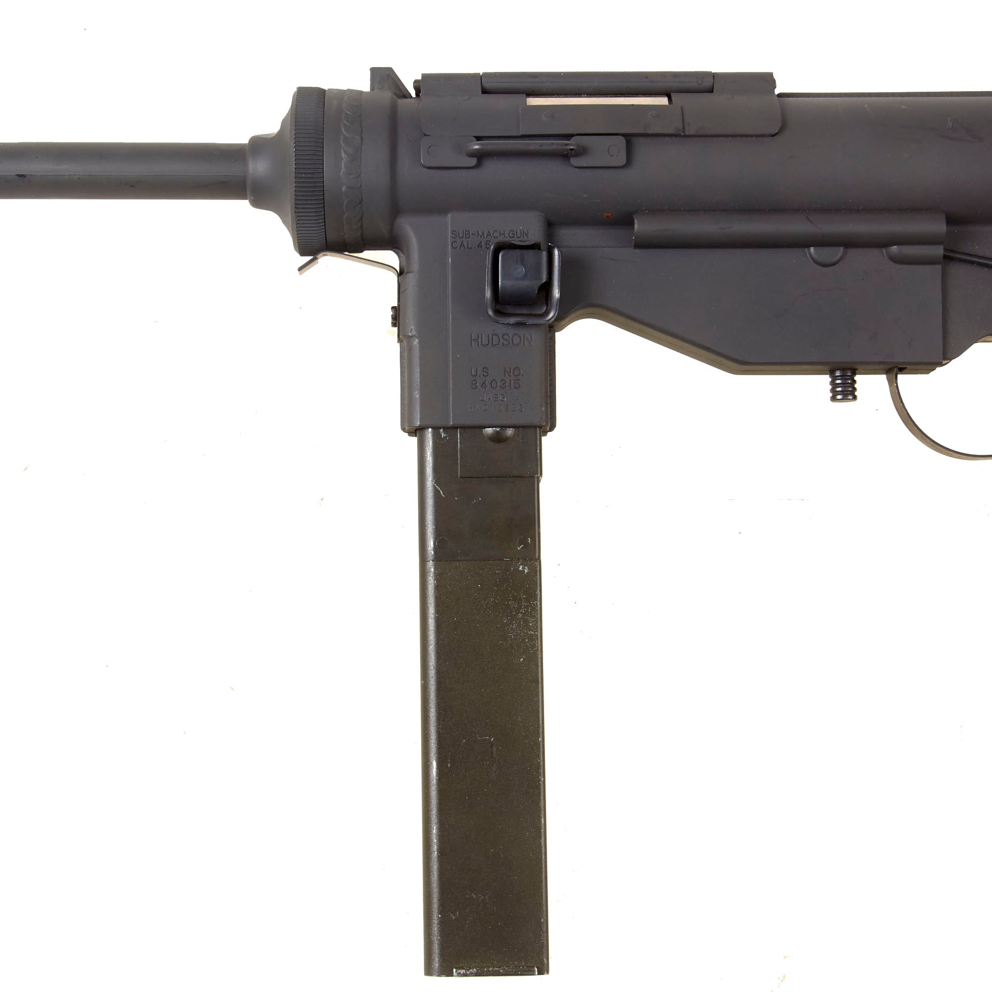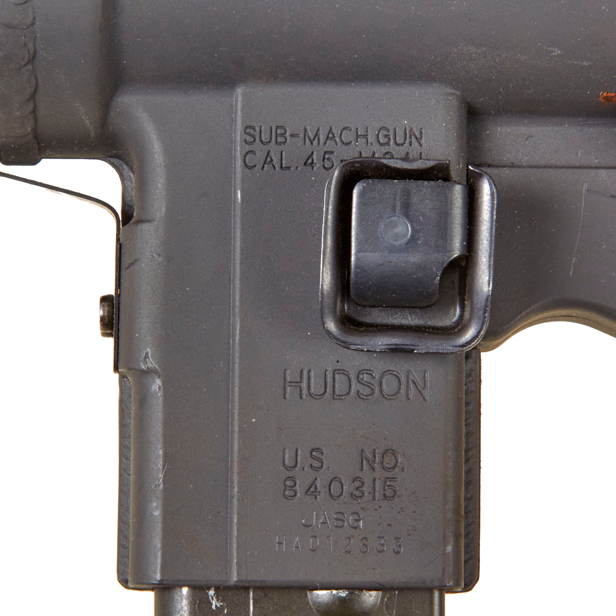 Vintage Replica Item: Only One Available. This is a fantastic extremely high quality U.S. WWII M3A1 Grease Gun, made by the well-known Hudson Model Gun Corporation (MGC) of Japan. These work like normal airsoft guns. This example does have a serial number, 840315. On the left side of the receiver it is stamped with: