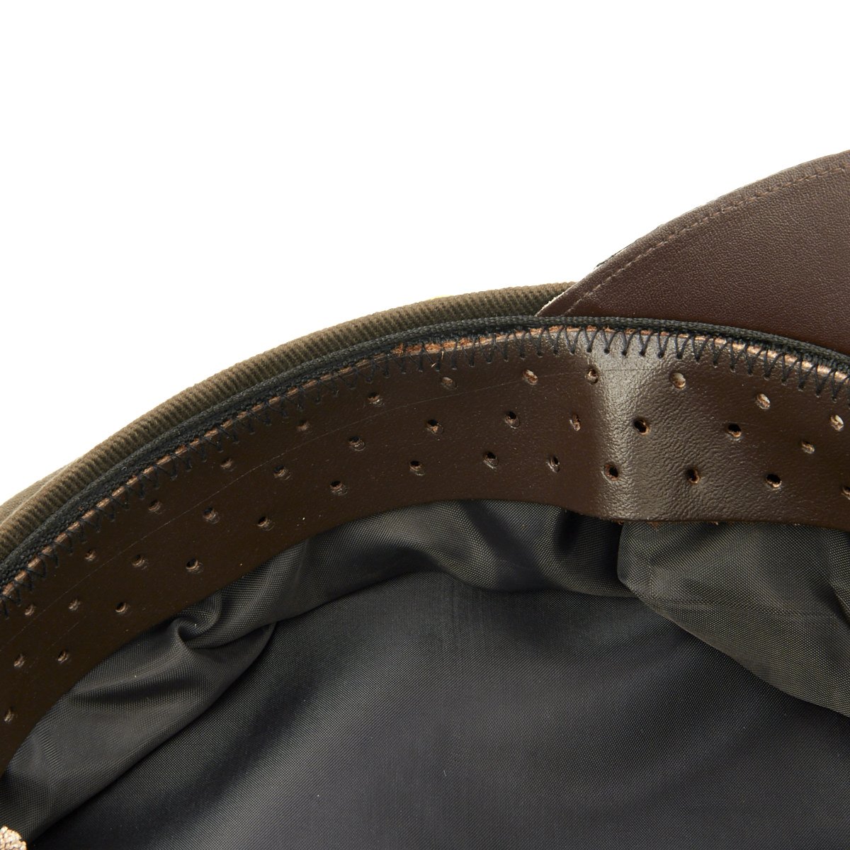 Normally, this cap had stiffeners - a support piece behind the cap device and a wire around the inside top perimeter to maintain the cap's round shape. These kept the cap in its proper, regulation military shape and angle. However, since bomber pilots wore headsets over their caps during flights, they would remove the wire stiffener to make headset wear more comfortable, causing the sides of the caps to become crushed. Eventually, the caps retained their floppy "crushed" look, giving the pilot who wore it the look of a seasoned veteran.
