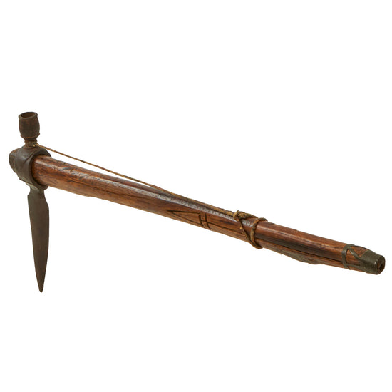 Original Early 19th Century Native American Smoking Pipe Tomahawk with Spontoon Lance Motif & Pewter Mouthpiece - Incredibly Scarce