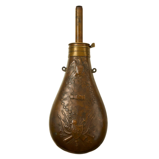 Original U.S. Mexican-American War Copper Batty Peace Powder Flask by N.P. Ames with Broken Spout - Dated 1838