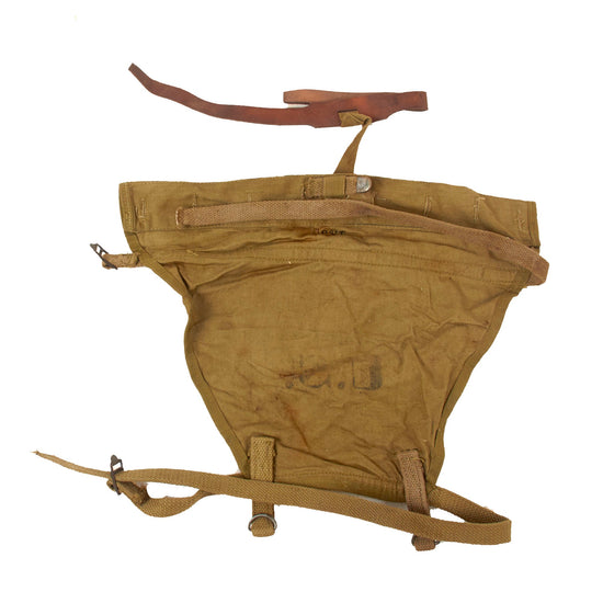 Original U.S. WWII M1928 Haversack Pack Extender / Tail with Attached Leather Strap by Boyt - Dated 1942