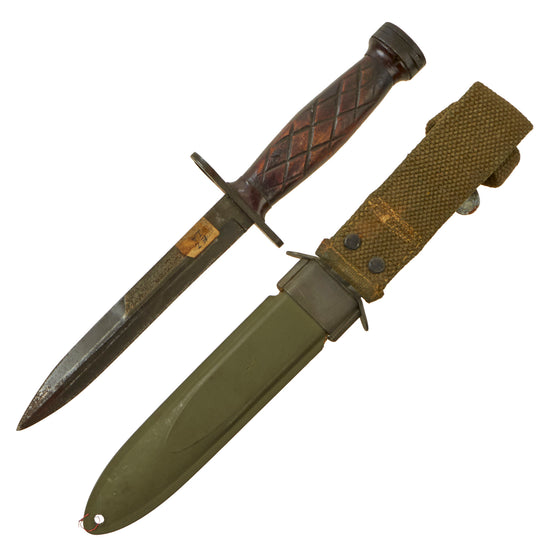 Original U.S. WWII M4 Bayonet by Utica Cutlery for the M1 Carbine with Factory Variant Wooden Handle & M8 Scabbard by B.M. Co