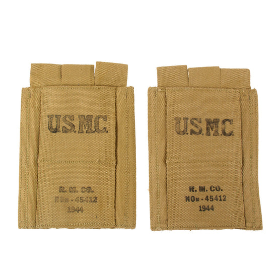 Original U.S. WWII USMC Set of Two 1944 Dated Thompson .45 Submachine Gun Magazine Pouches by Russell Mfg. Co.