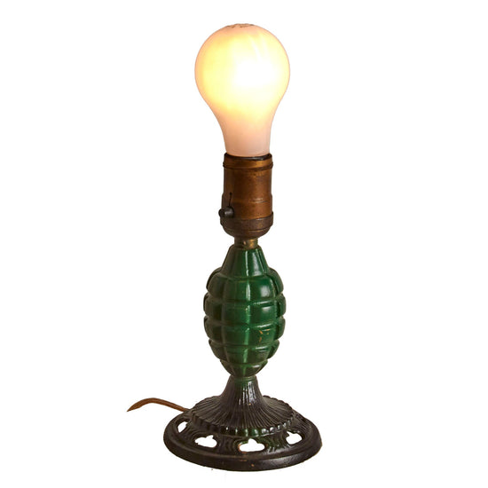 Original U.S. WWII Mk. II Grenade Body Trench Art Lamp with Cast Iron Base - Functional