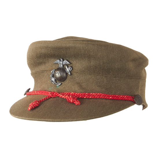 Original U.S. WWII Marine USMC Women's Winter Wool Forest Green Service Visor Bell Crowned Cap by Knox - Size 23