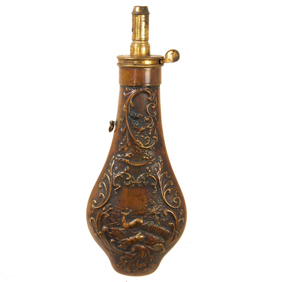 Original U.S. Civil War Era American Flask & Cap Company Unusual Shaped Embossed Hunter Copper Powder Flask - Functional