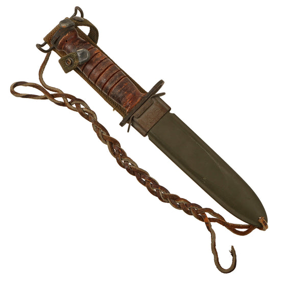 Original U.S. WWII Western G-46-6 "Shark" Fighting Knife with Leather Scabbard & Damaged Grip