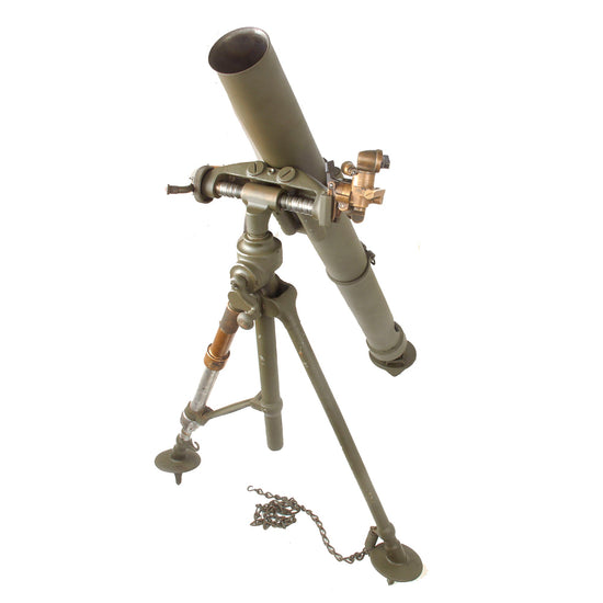 Original Portuguese WWII Type 81mm M/937 Display Mortar System with Commando Base Plate, Bipod, Optical Sight & Accessories - Inert