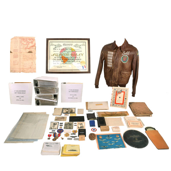 Original U.S. WWII B-17 “Gamblers’ Choice” Navigator William Lloyd Briner’s Painted A2 Flight Jacket, Medals, Flight Logs, & Ephemera Group with Six Massive Binders of Original Papers & More - 614th Bomb Squadron, 401st Bomb Group