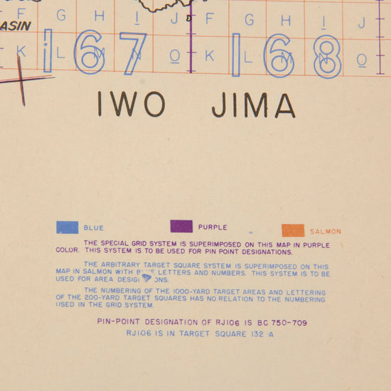 Original U.S. WWII USMC Battle of Iwo Jima “Covered Artillery with Principal Directions of Fire Indicated” Map - Extremely Scarce - 14 x 19¼”