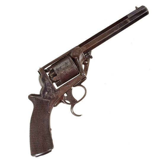 Original British Tranter 54 Bore 2nd Model "Treble Action" Engraved Percussion Revolver Serial 2975T in Custom Case with Accessories - Circa 1857