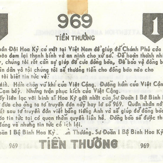 Original U.S. Vietnam War Propaganda Leaflets with Original Psy-Op Descriptions - Lot of Five