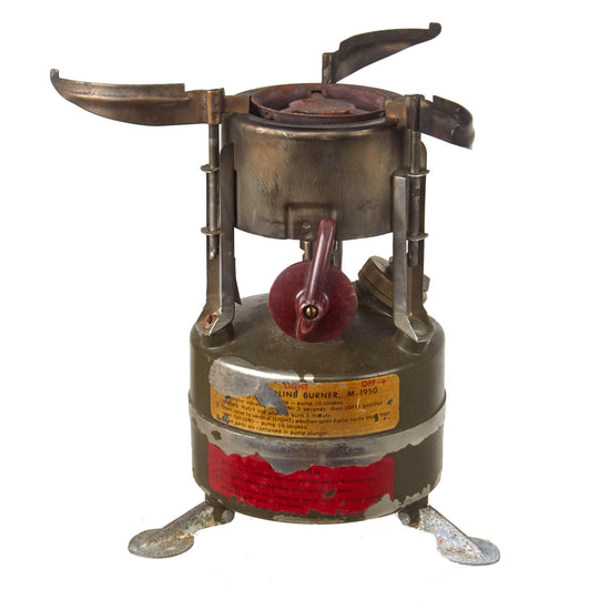 Original Vietnam War U.S. Issue Rogers Gasoline Camp Stove in 1944-Dated Bayonet "F" Canister - Dated 1965