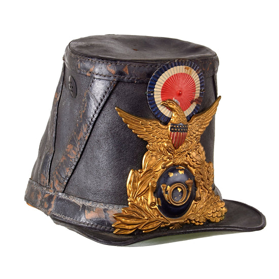 Original U.S. Civil War Imported French Second Empire Model 1860 Leather Shako - Original Period Applied Insignia