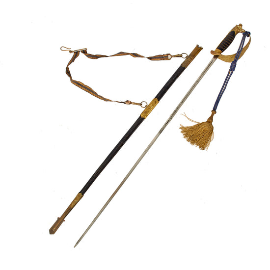 Original Italian WWII Model 1923 Regia Aeronautica Air Force Pilot Officer Sword With Scabbard, Sword Knot, and Hanger