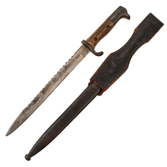 Original German Pre WWII Long Dress Sawback Stag Handle Bayonet by Alcoso with Scabbard and Frog