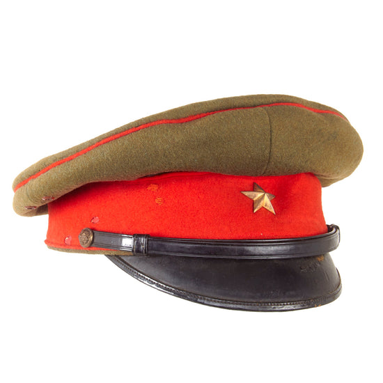 Original Pre-WWII Imperial Japanese Army Type 45 Officer Visor Cap with Period Japanese Newspaper Used as Stiffener