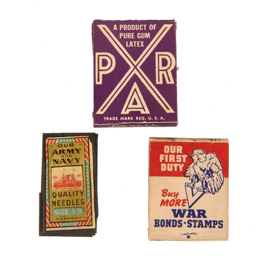 Original U.S. WWII Personal Effect Items Lot Including Great Roll-Up Toiletries Kit, Unused Cellulose Muzzle Cover Tape & Sealed Shoe Polish