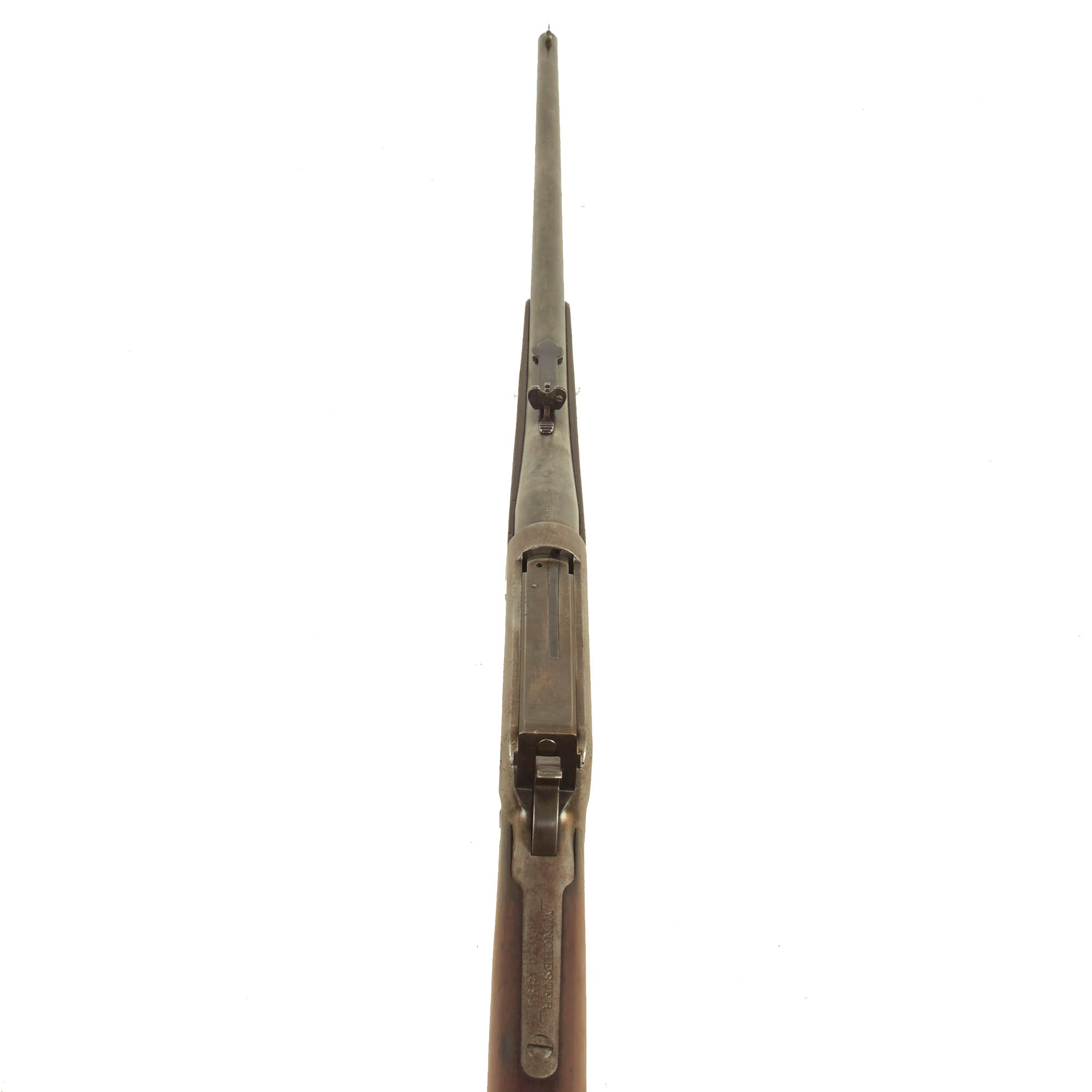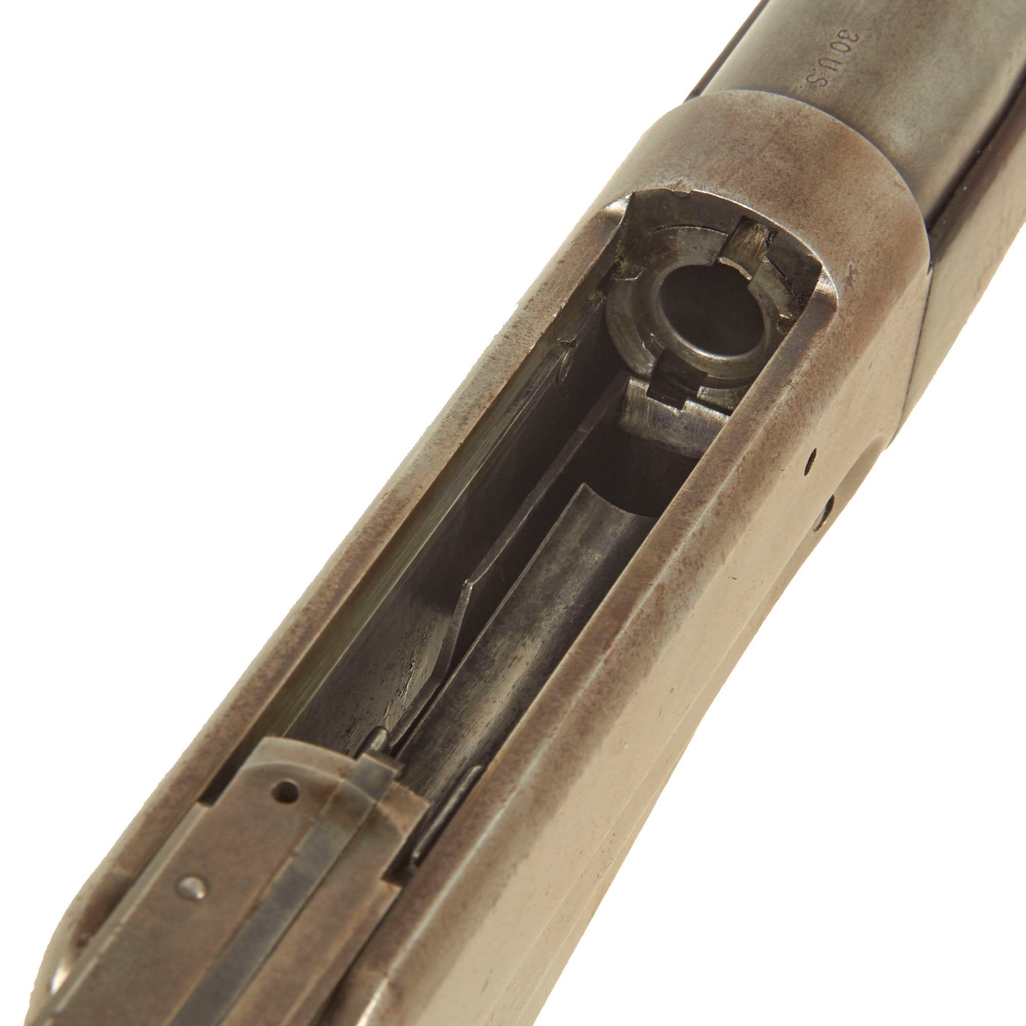 Above the chamber the barrel is marked .30 U.S., one of several designations used for the U.S. .30-40 Krag cartridge, used by the U.S. Springfield Krag-Jørgensen Long Rifles, the standard U.S. military long arm of the time.