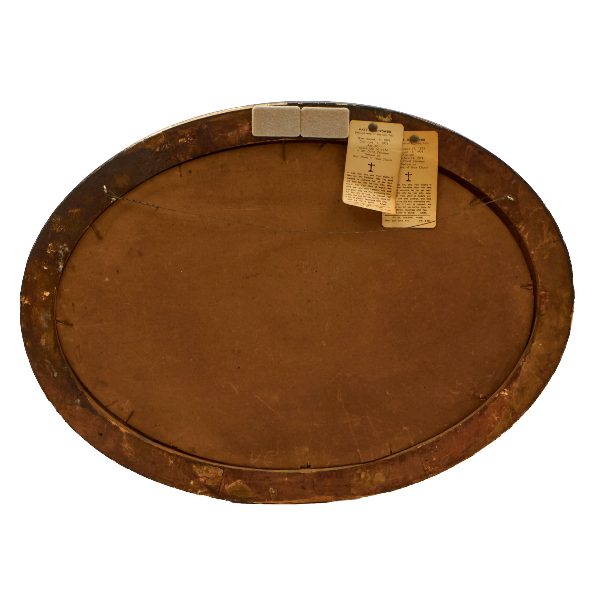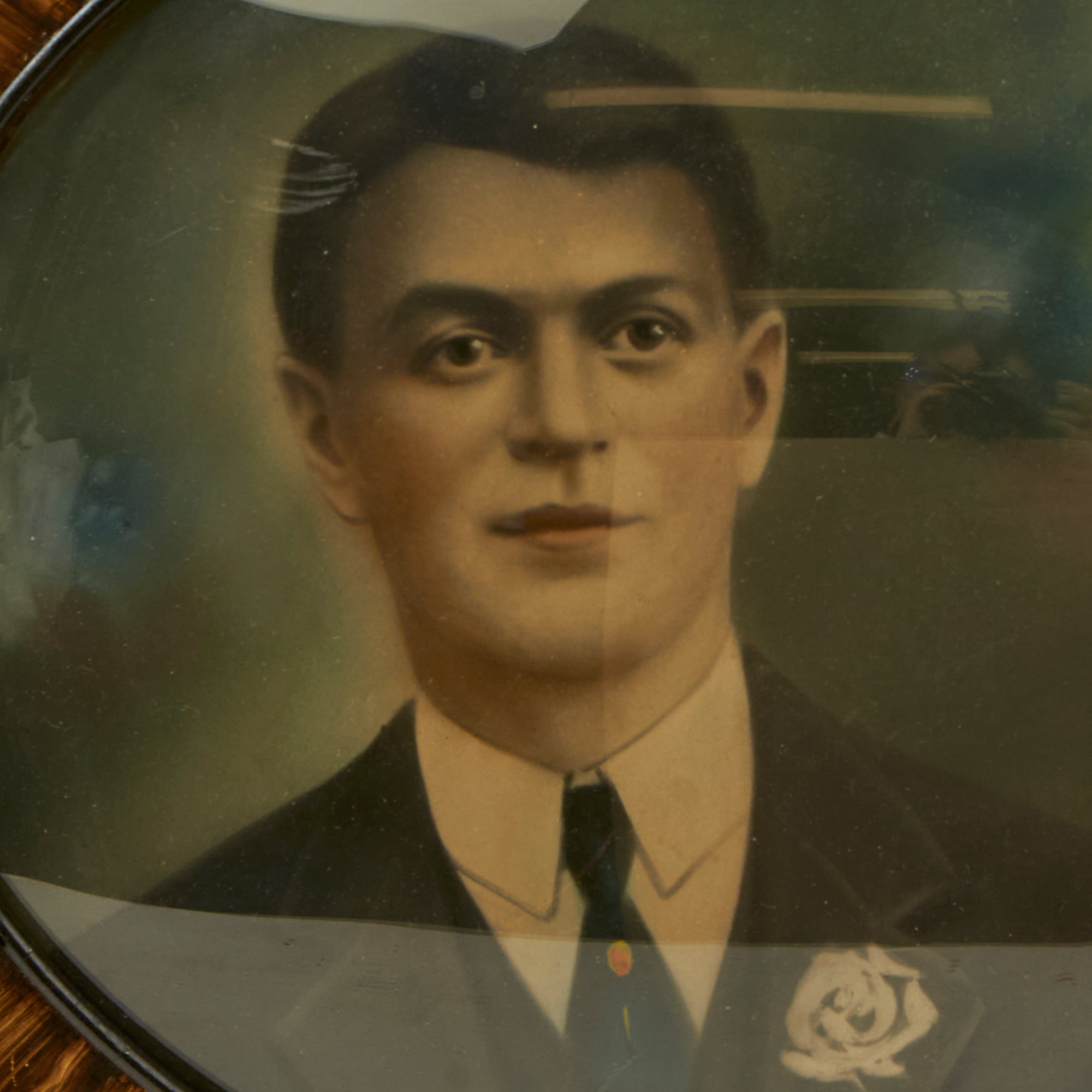 The frame measures 17 x 23” and is in good condition, with some of the ornate pieces on the front of the frame becoming loose. On the back of the frame are attached two copies of the same Funerary notice, for the death of Mary P. Mankowski, born 1893 and passed away 1974 in Detroit, Michigan. Her husband was Paul Mankowski, a Polish man who we believe to have been the soldier in the photo, but of this we can’t be certain. Before and during World War I, Poland didn’t exist as its own country, instead being part of the Austro-Hungarian Empire, and as such, many Polish men fought for the empire during the war. It was not until after the war that Poland became its own country again.