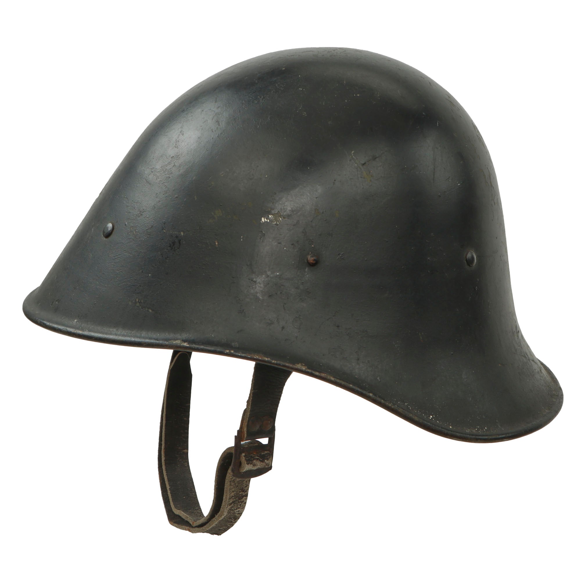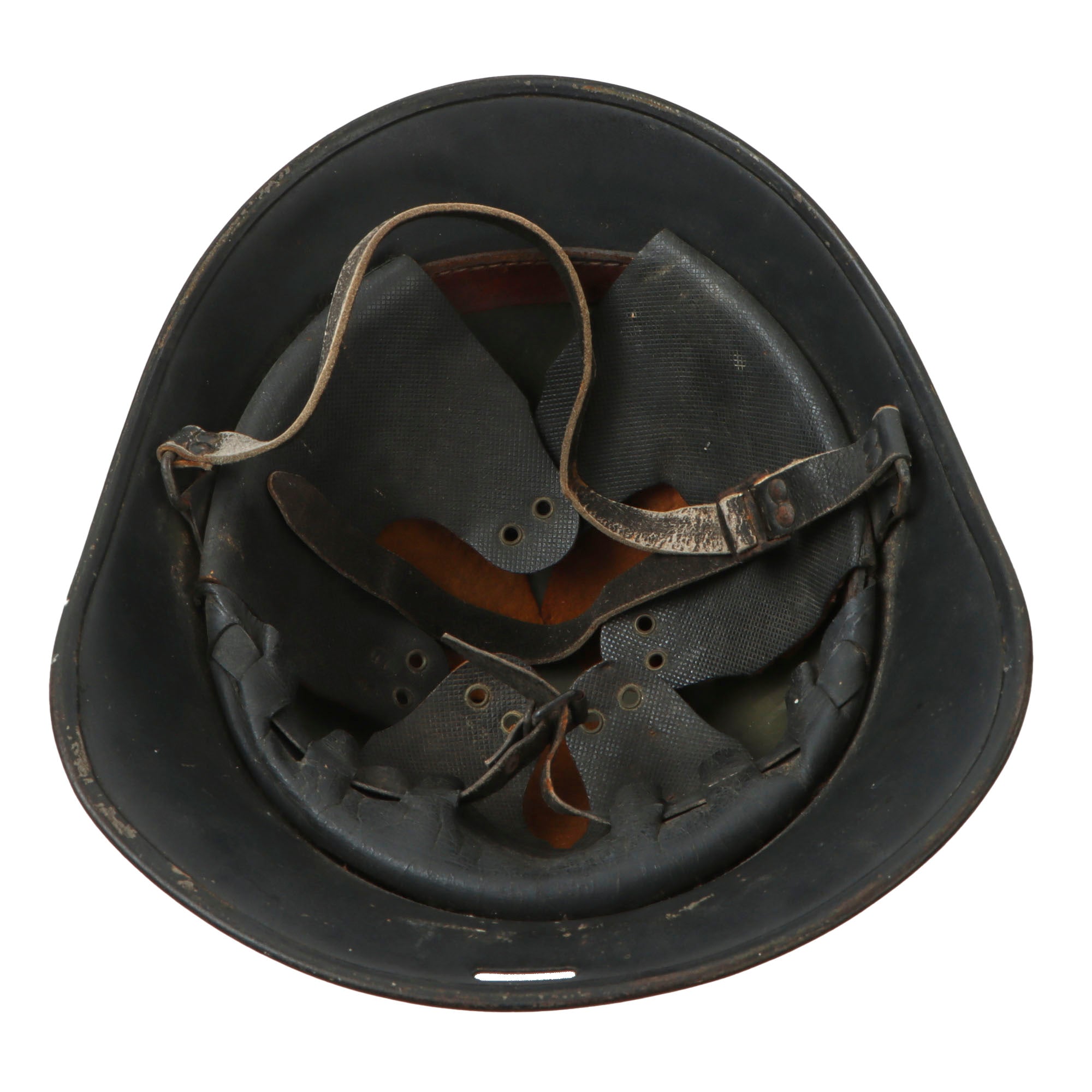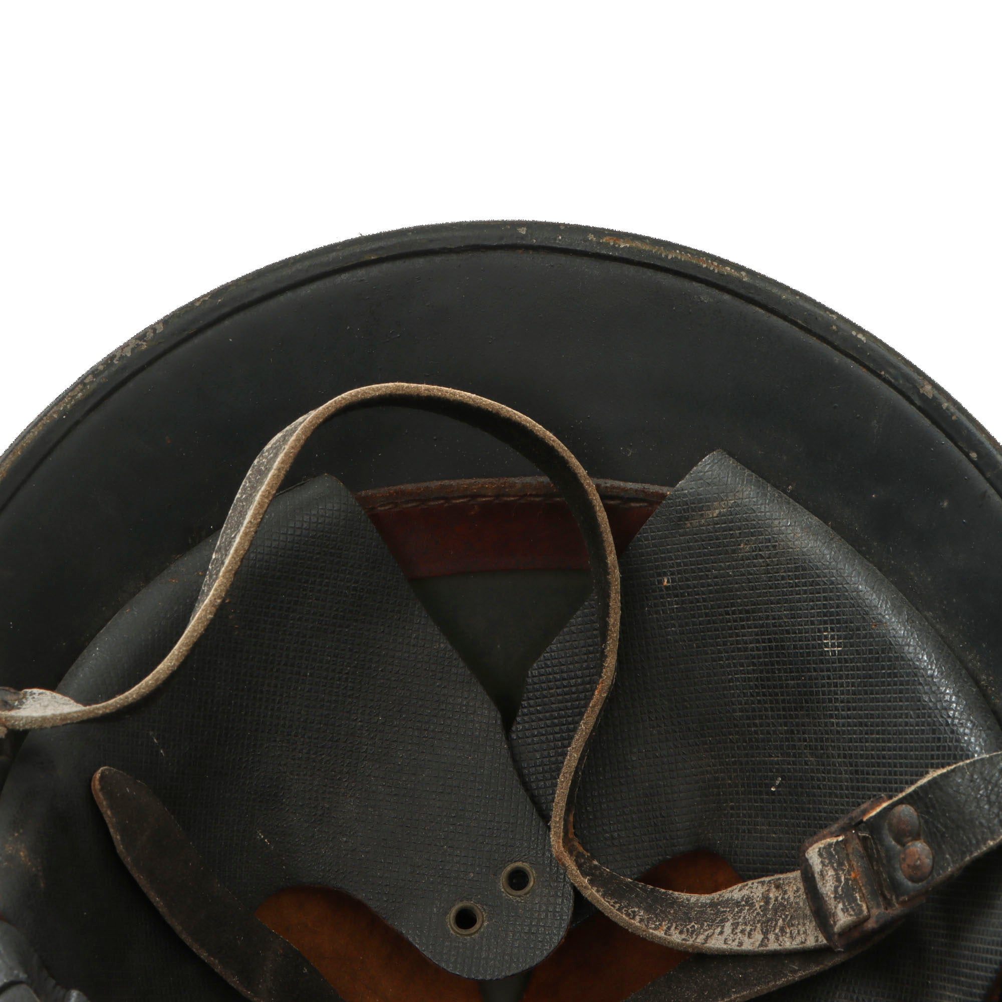 The overall condition is still very good with all straps and fasteners in good working order. These helmets are scarce. Once occupied, the Germans re-purposed captured field gear. Helmets were often melted down or reworked. Most were sent to Romania to be used during the war and the German Luftchutz even used them.