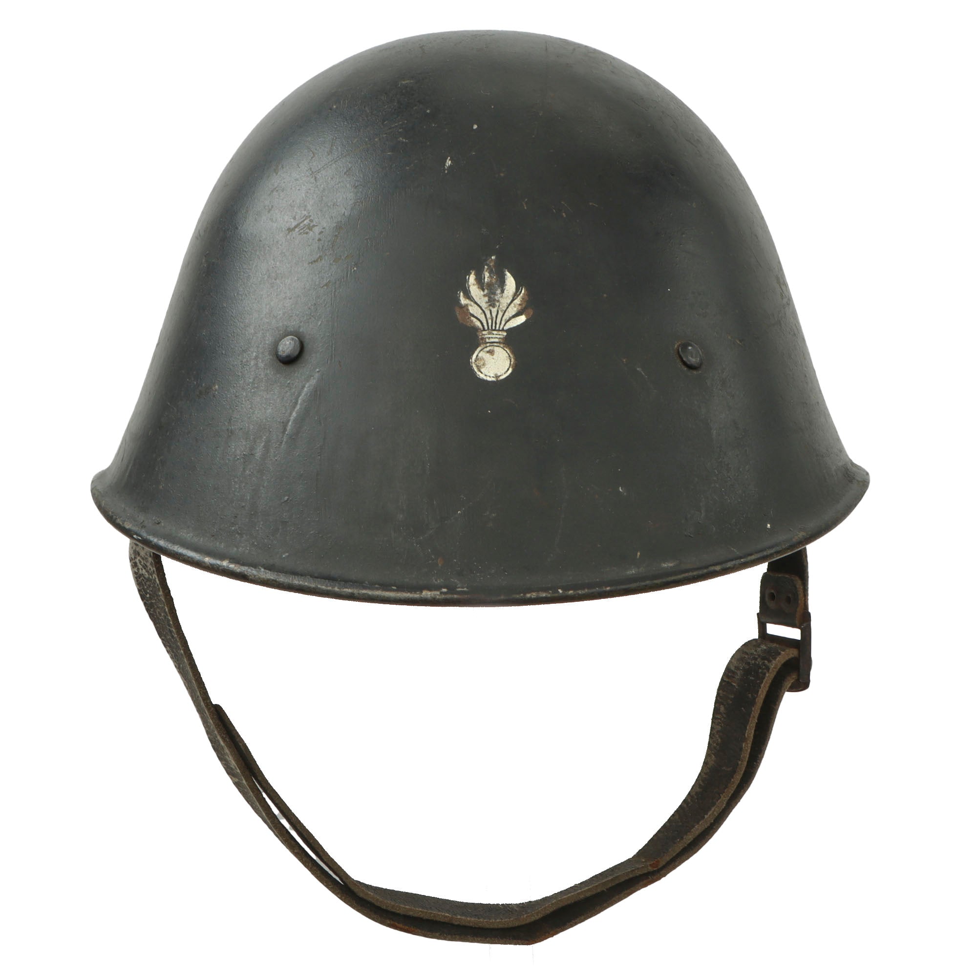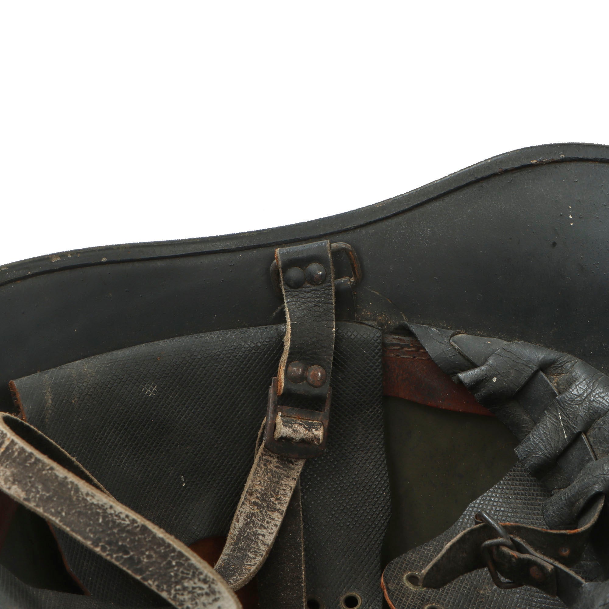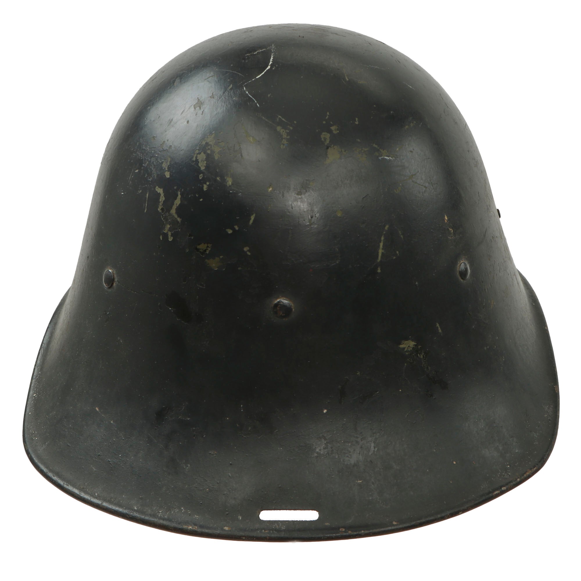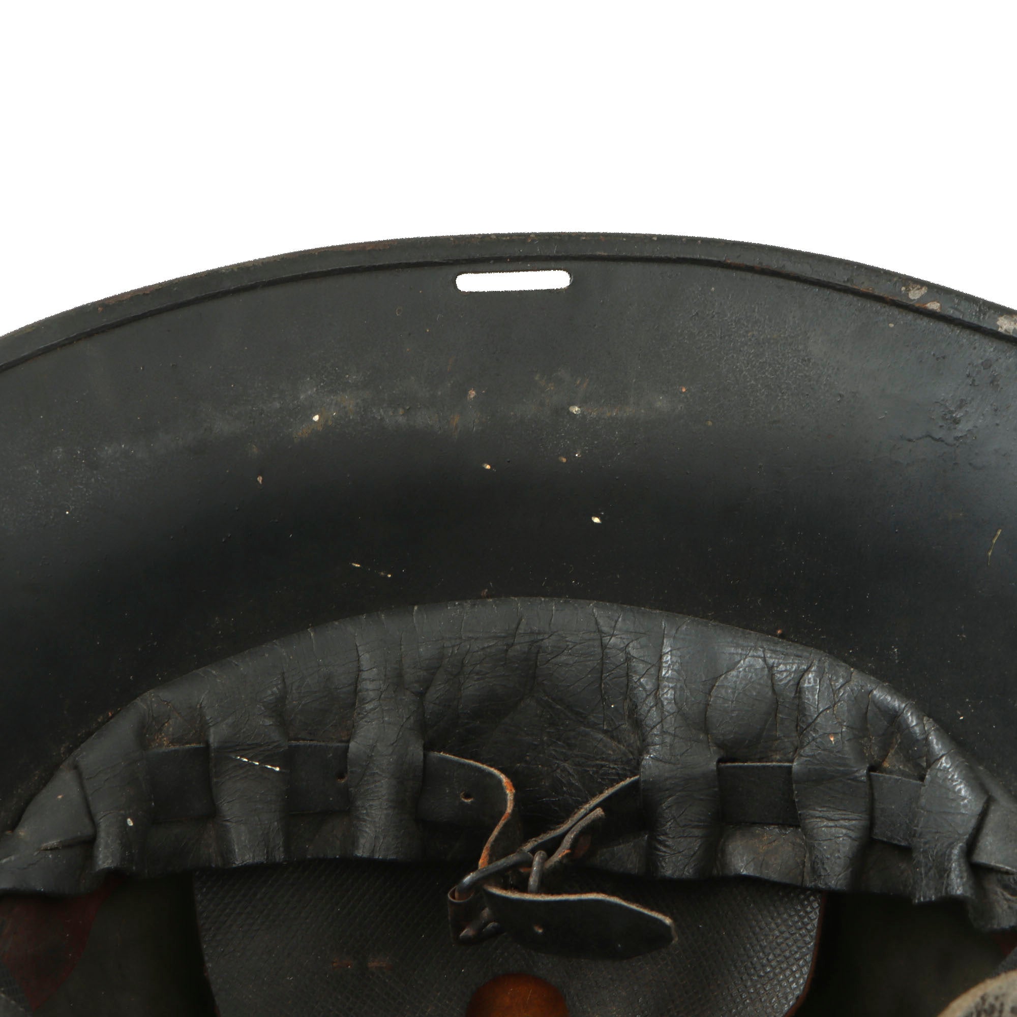 The overall condition is still very good with all straps and fasteners in good working order. These helmets are scarce. Once occupied, the Germans re-purposed captured field gear. Helmets were often melted down or reworked. Most were sent to Romania to be used during the war and the German Luftchutz even used them.